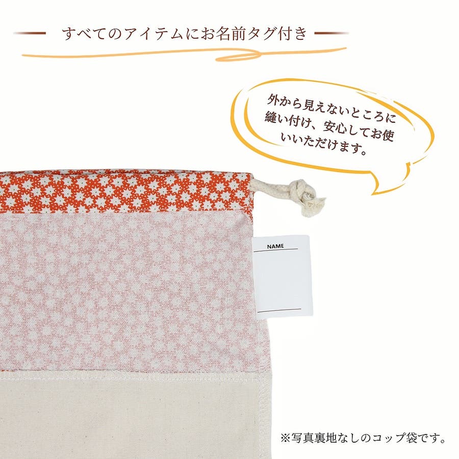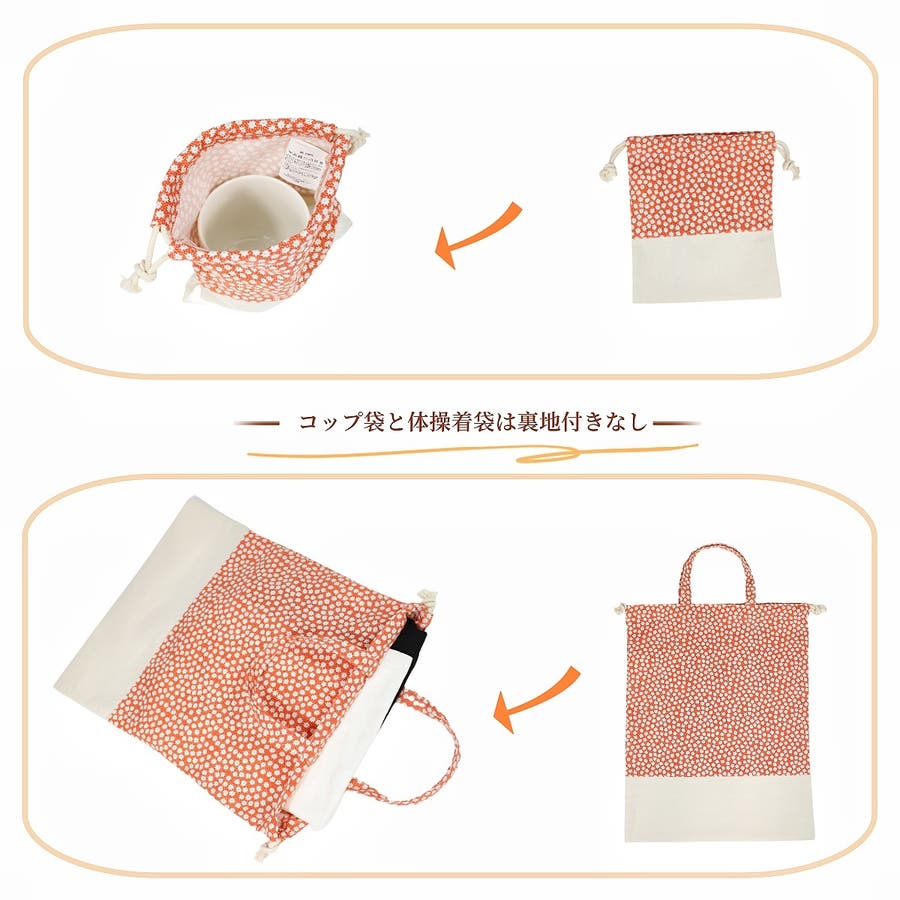 体操服やマグカップなどを入れられる、用途に合わせた大小の巾着袋。