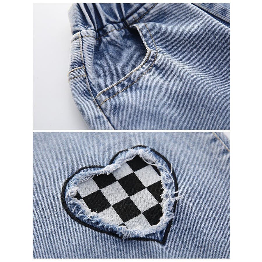 | デザイン | A【チェック×ハート】 / B【ロゴ】 / C【フリンジ】 / D【スリット】 / E【ダメージ】 |