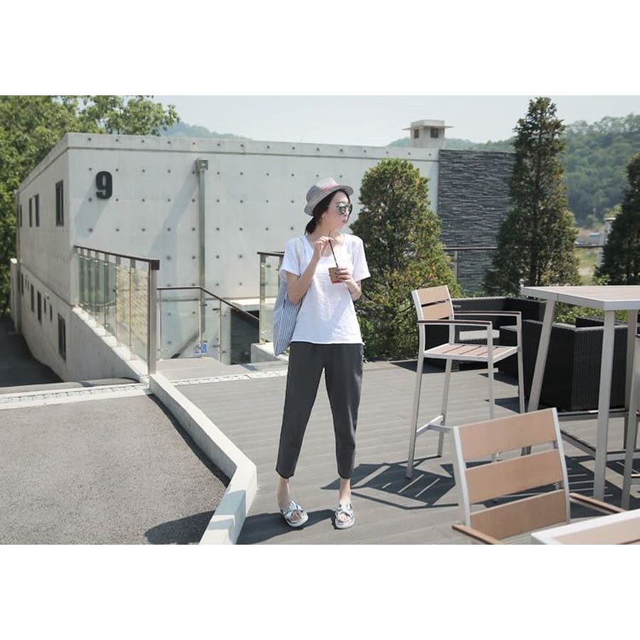 ゆったりテーパードシルエットの9分丈マタニティロングパンツです。