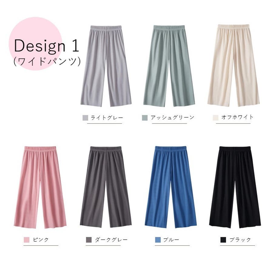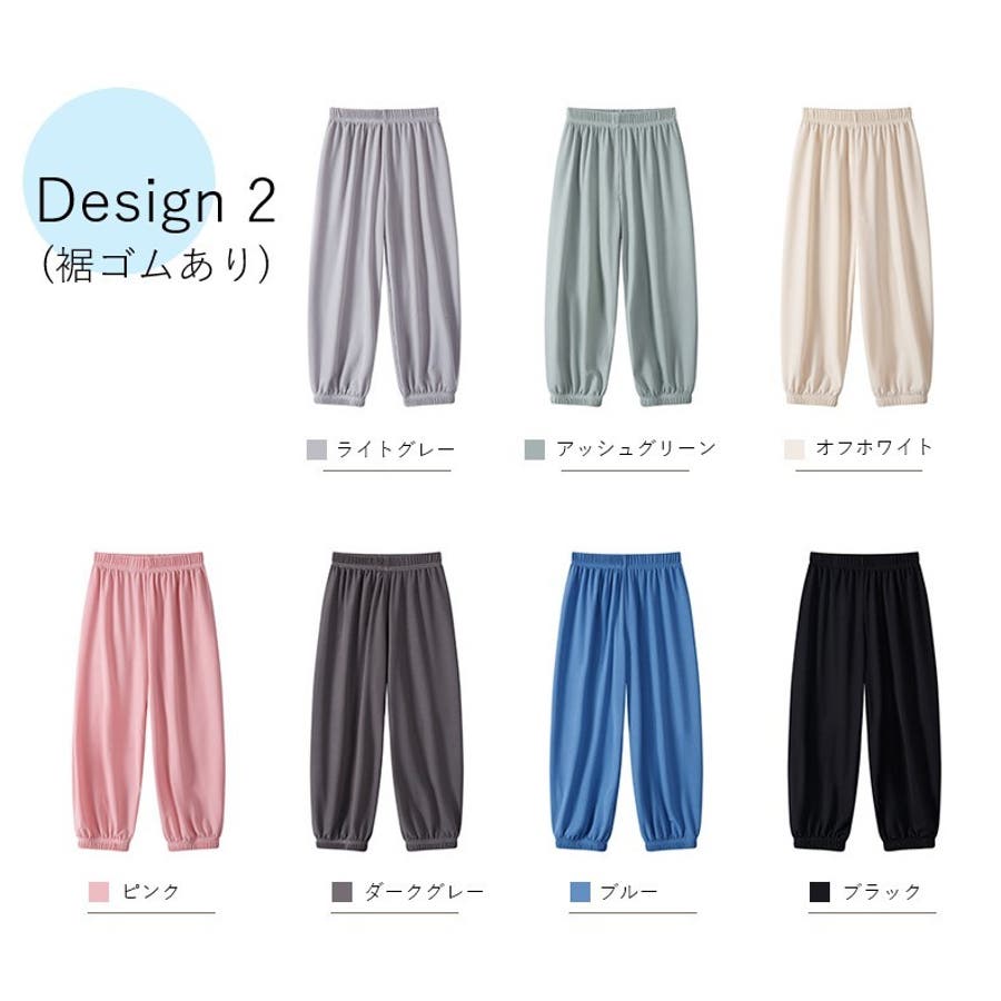 裾が開いたワイドパンツタイプと、動きやすい裾ゴム入りの2種類から選択可能♪