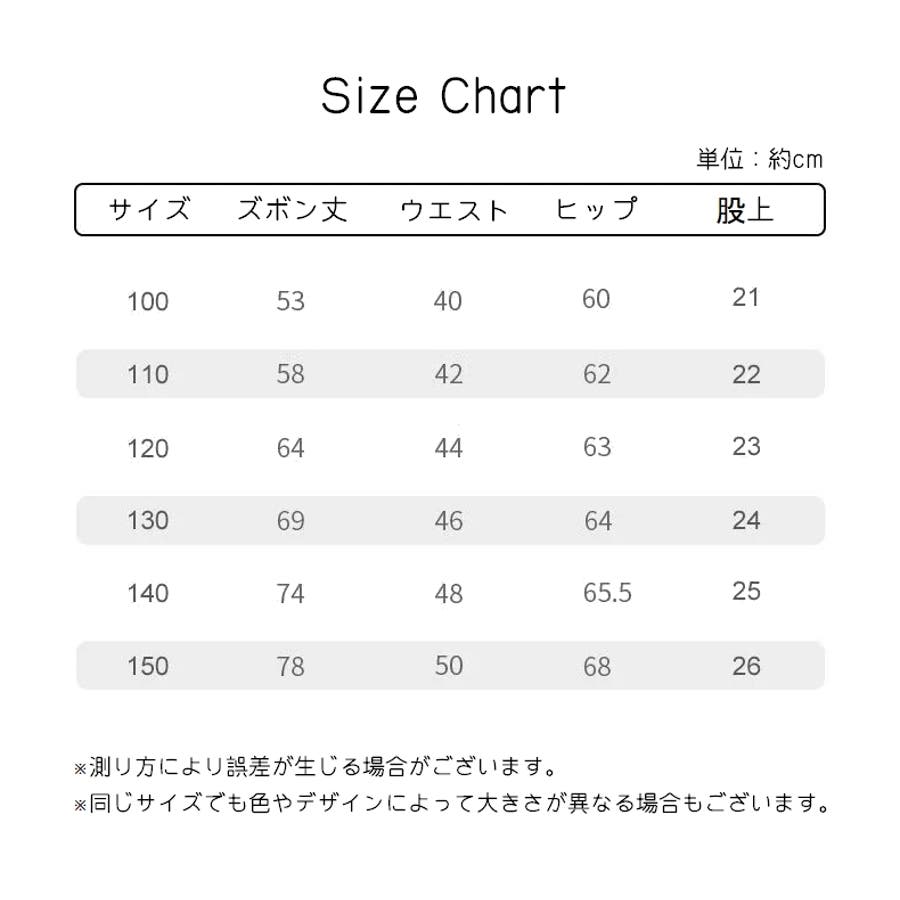 | サイズ | 100【90~105cm】 / 110【105~115cm】 / 120【115~125cm】 / 130【125~135cm】 / 140【135~145cm】 / 150【145~160cm】 |