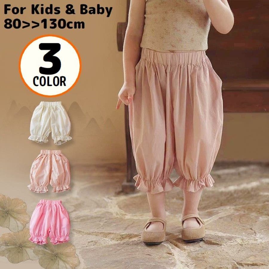 薄手で通気性の良いこども用7分丈サルエルパンツです。
