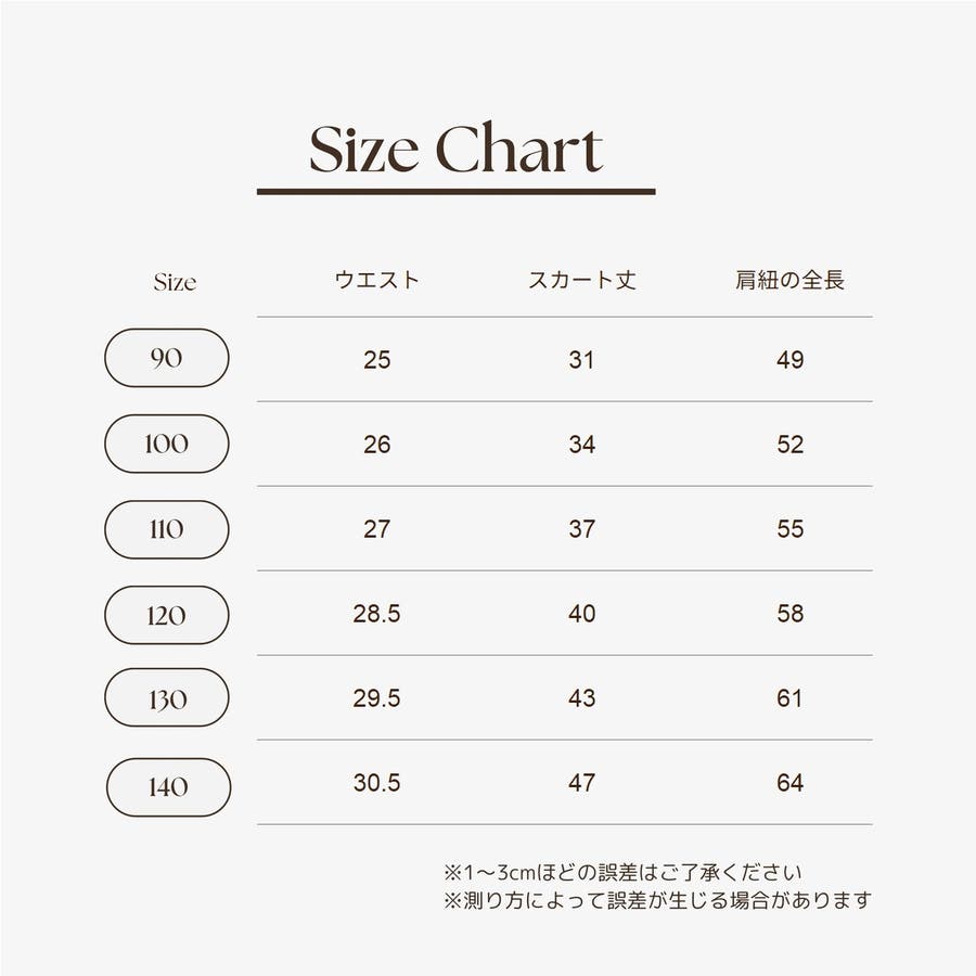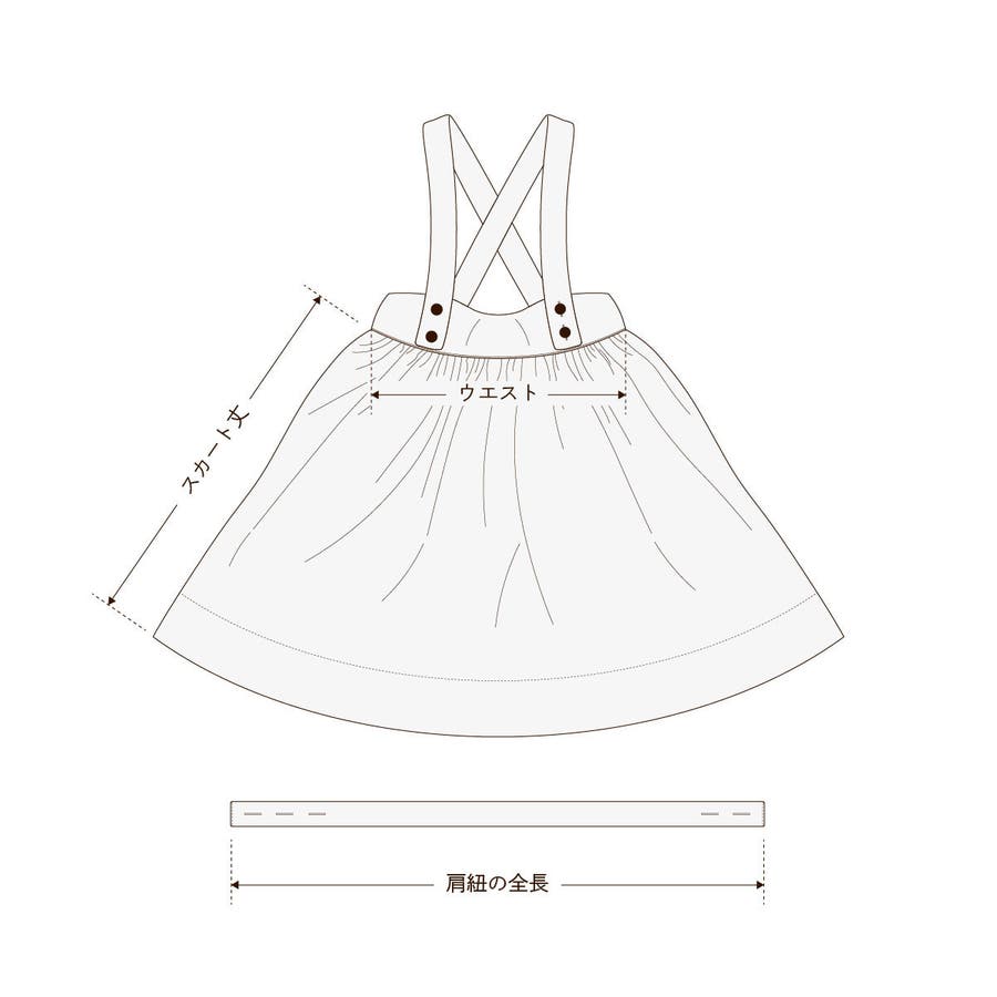 サイズ:ウエスト/スカート丈/肩紐の全長(平置き・cm)