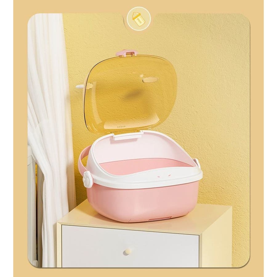 持ち手付きで持ち運びしやすく、フタ付きで衛生的♪