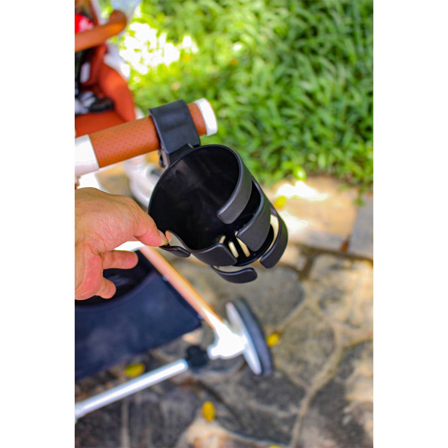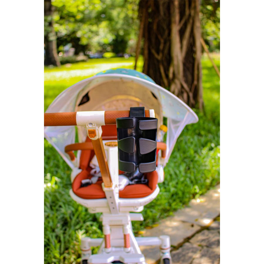 ベビーカーに取り付けて、アウトドアシーンなどでのボトルまたはペットボトルの持ち運びに。