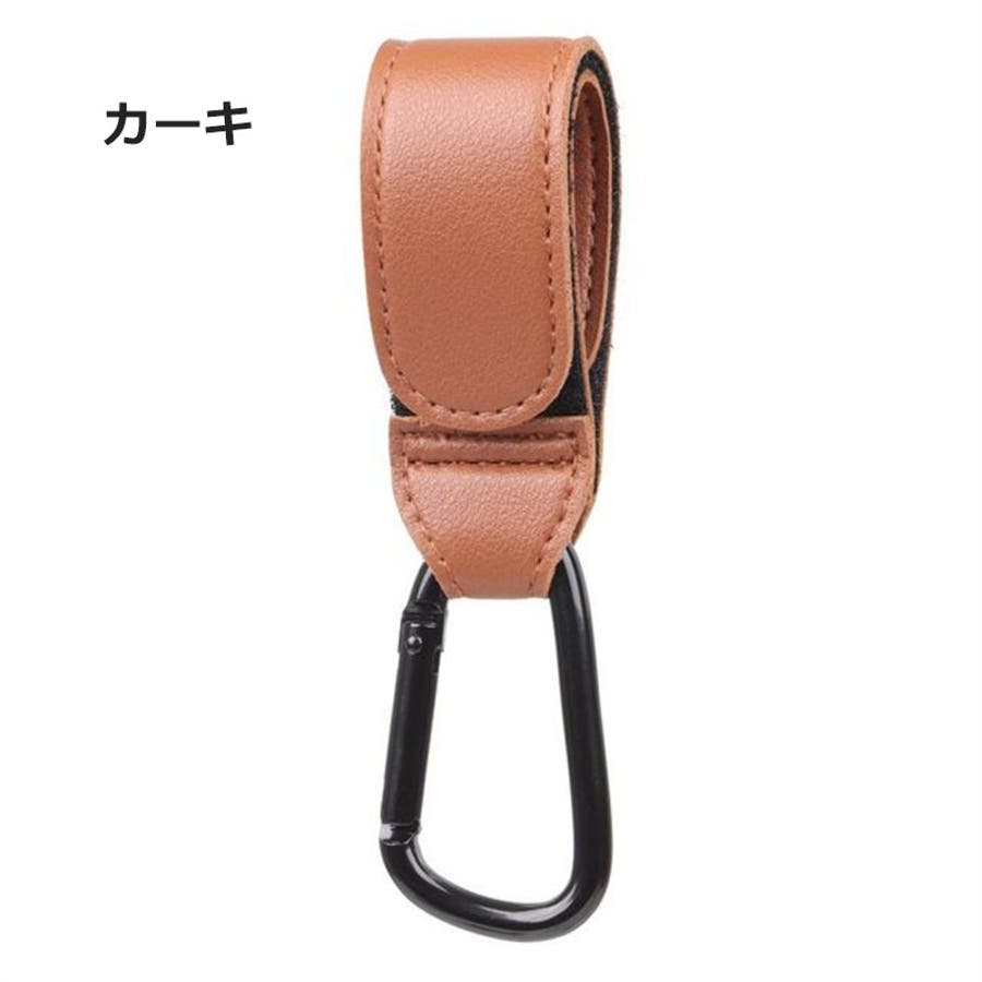 シンプルで上品なレザー調デザインのベビーカー用フックです。