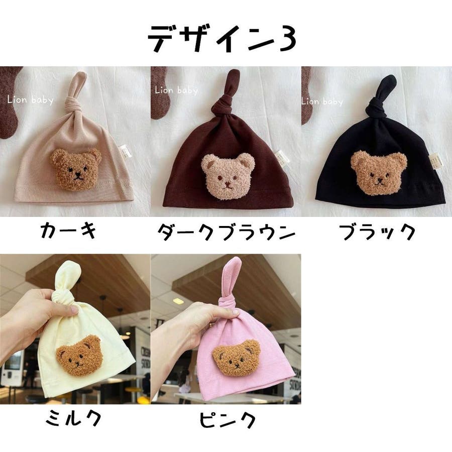 デザインはクマ耳帽子は2種類、クマのマスコット付きが1種類と3種類の形があります。