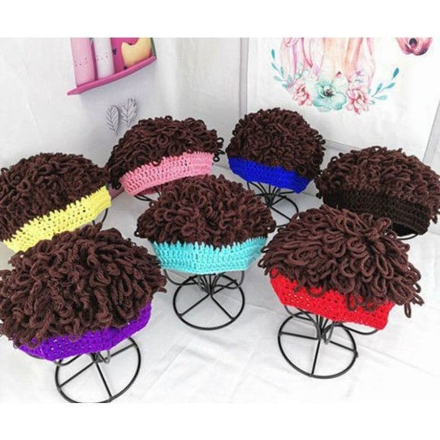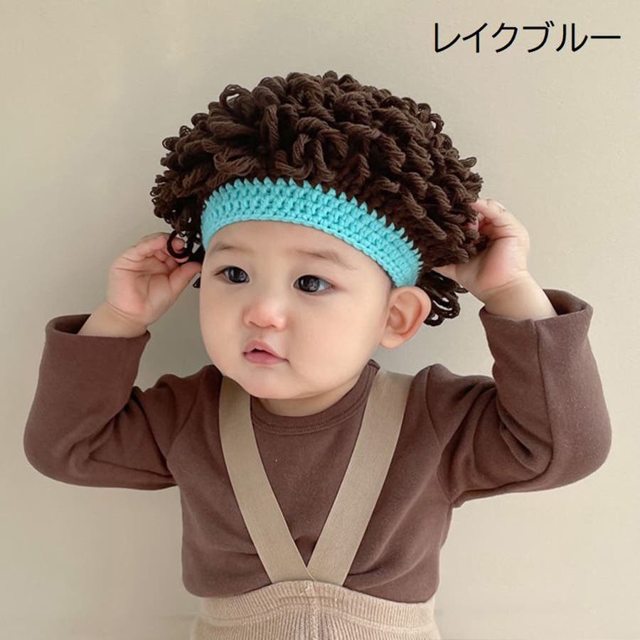 【ブルー】ニット帽 ウィッグキャップ 帽子
