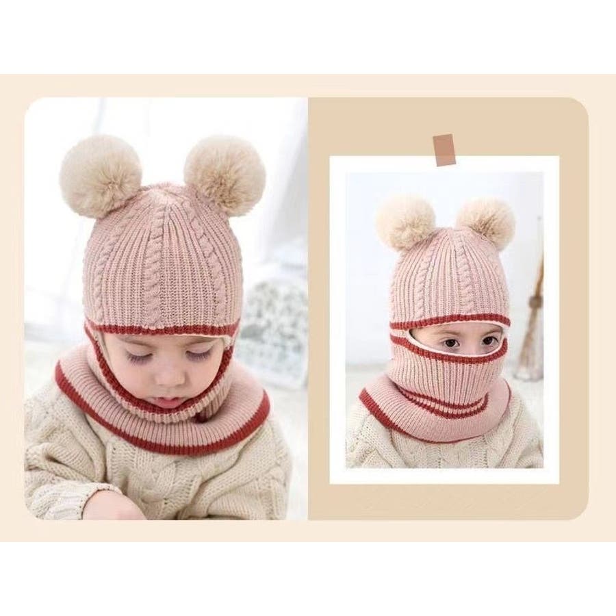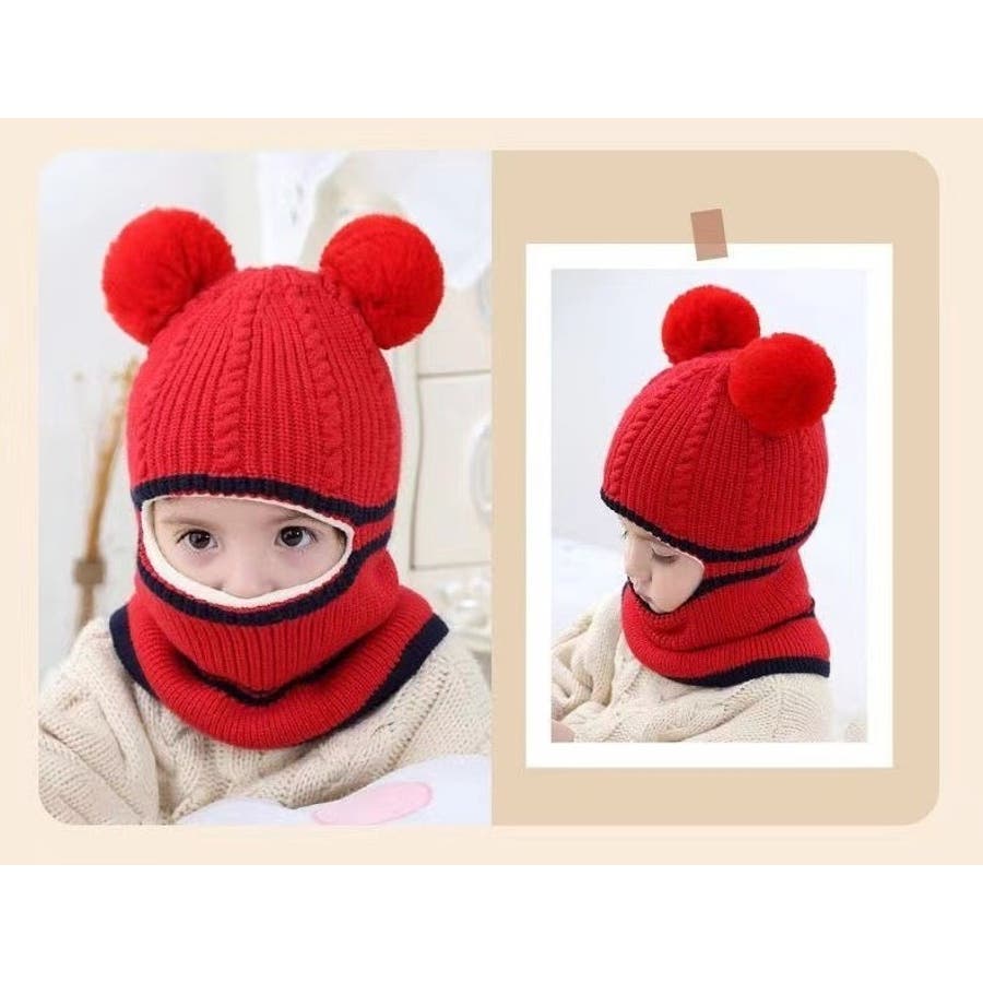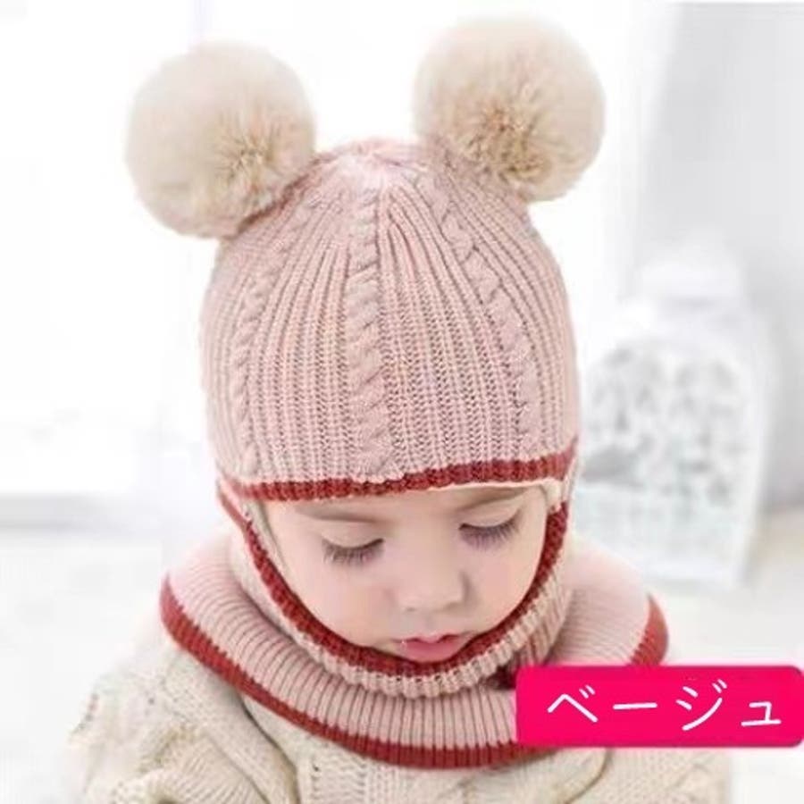 クマの耳を思わせる二つのポンポンがとってもキュートなアイテムです♪