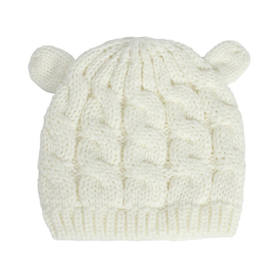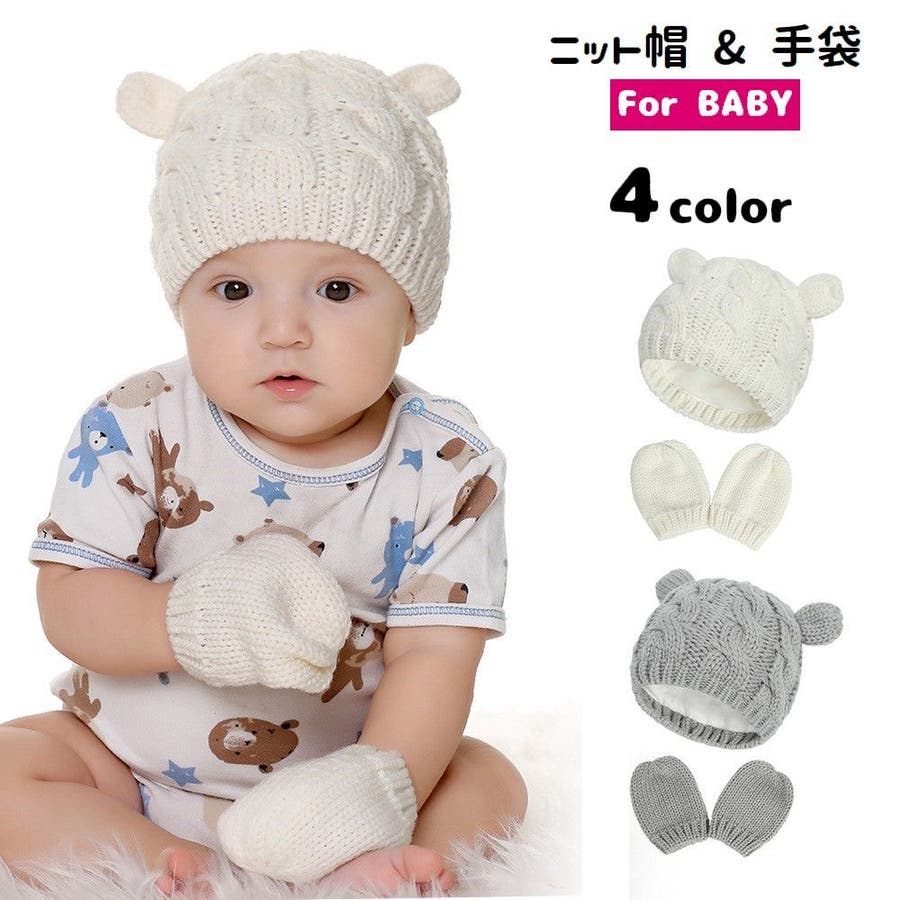 耳付きデザインが可愛いベビー用ニット帽+手袋の2点セットです。