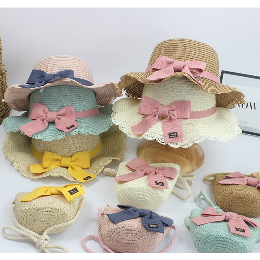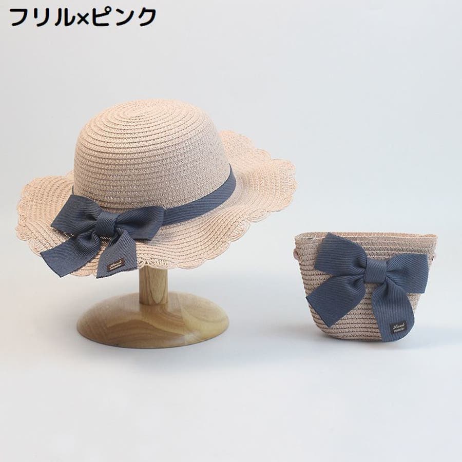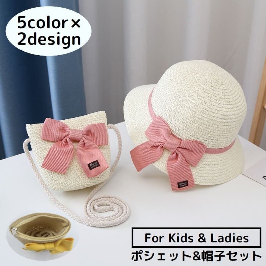 かごバッグ風ポシェット&麦わら帽子の2点セットです。