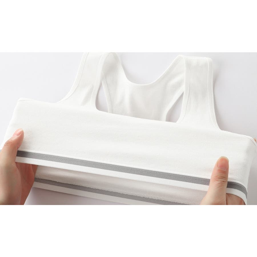 体型変化の時期の為、今まで使用していたブラトップが締めつけが気になるということで、初めてスポーツブラタイプを購入しました。キツすぎず嫌がらずに使用しています。肌が弱い娘には今のところ素材でのトラブルも無く、こちらの上にタンクトップやキャミソールの下着を着るようにしています。