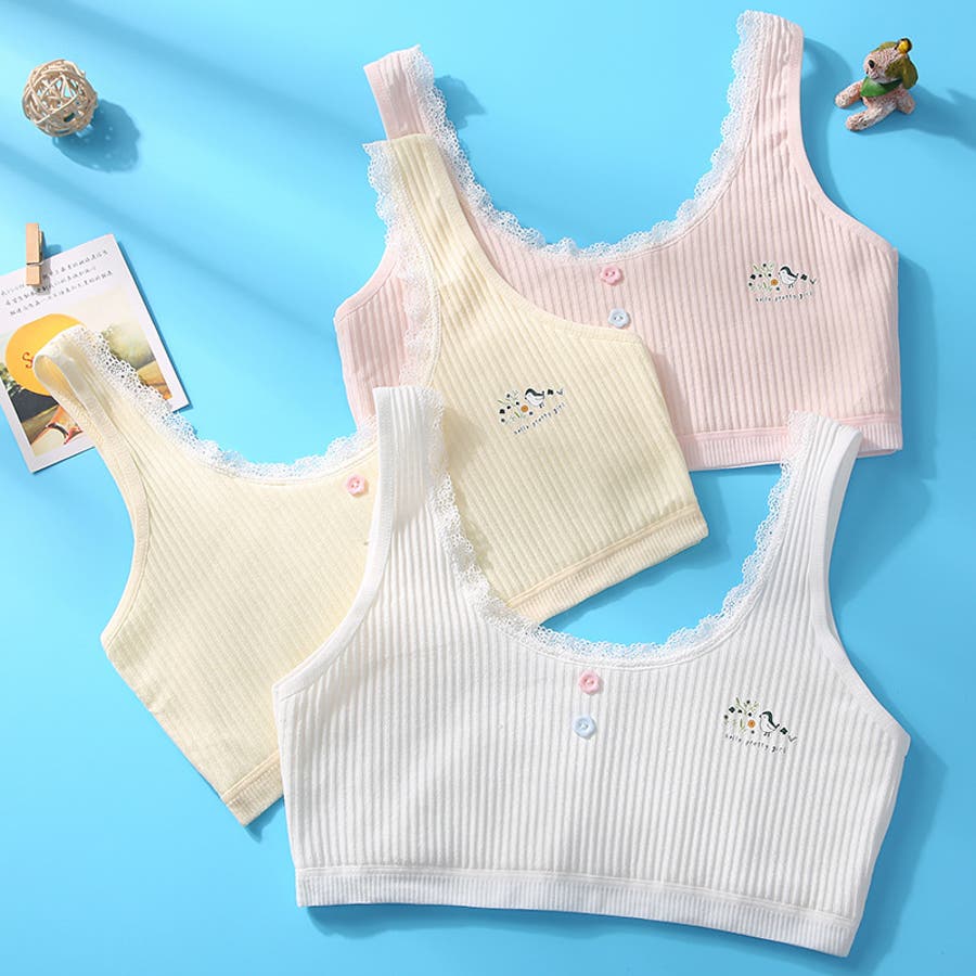 リブ生地&レースや飾りボタン付きでかわいいデザイン♪