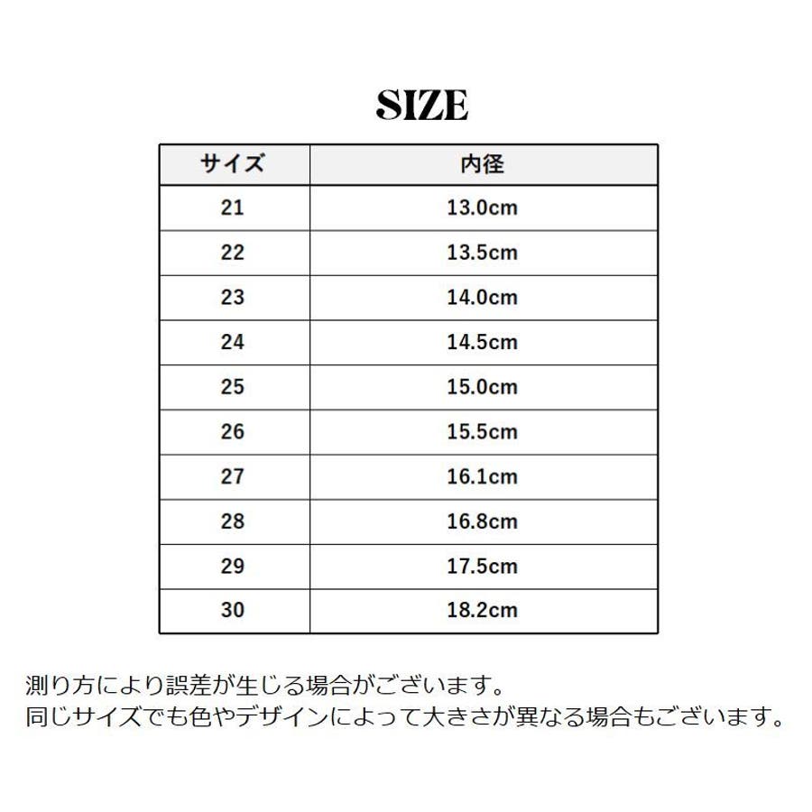 | サイズ | 21【13.0cm】 / 22【13.5cm】 / 23【14.0cm】 / 24【14.5cm】 / 25【15.0cm】 / 26【15.5cm】 / 27【16.1cm】 / 28【16.8cm】 / 29【17.5cm】 / 30【18.2cm】 |