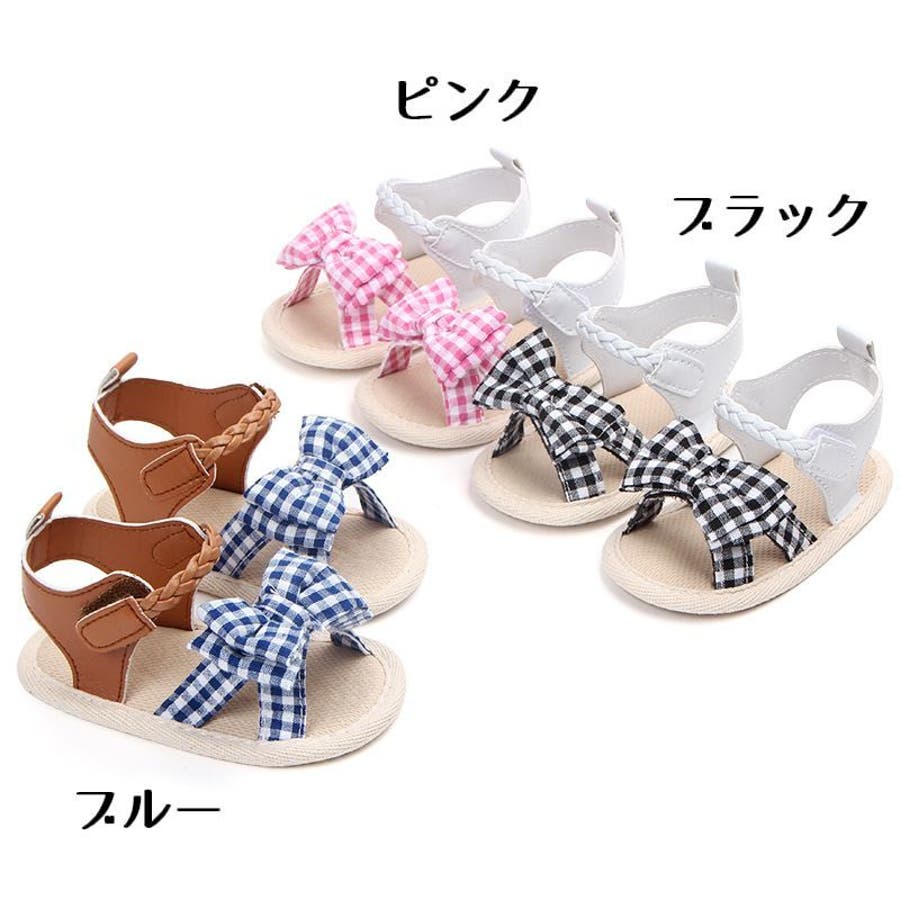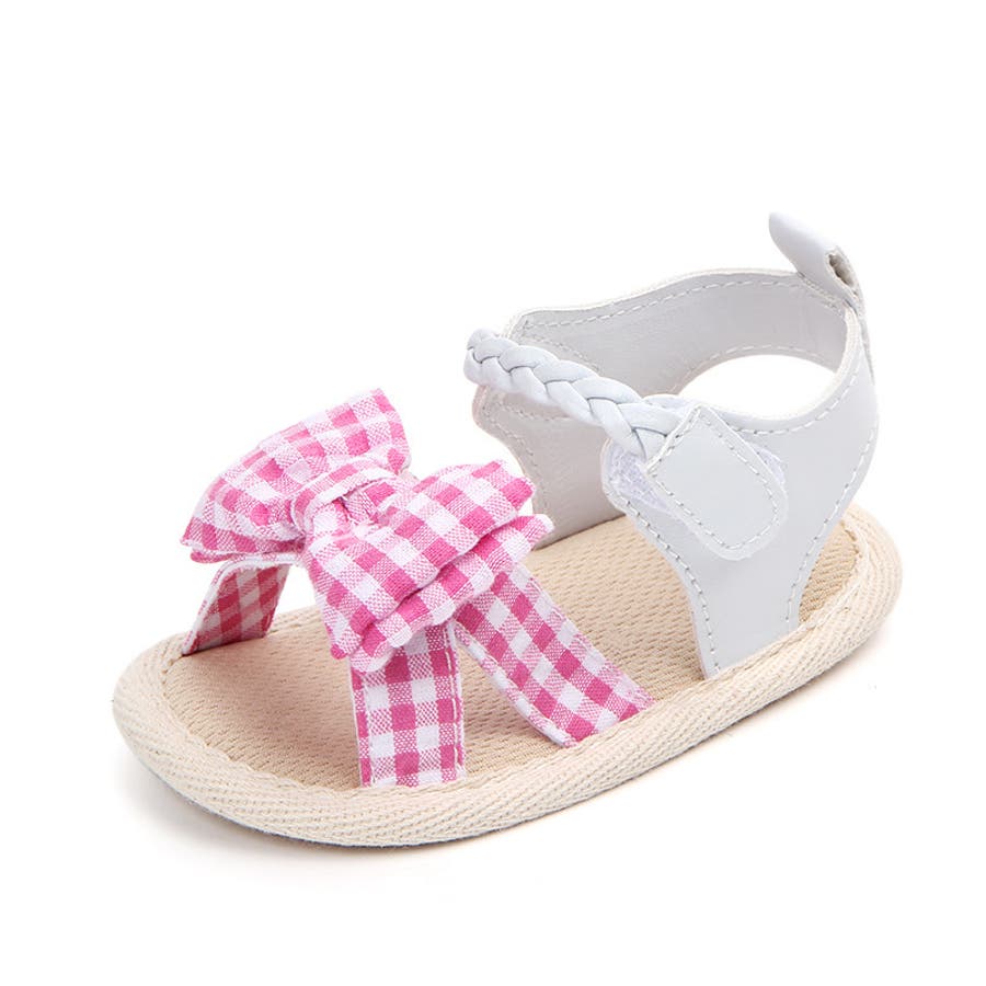 チェック柄のリボンが可愛いベビー用サンダルです。