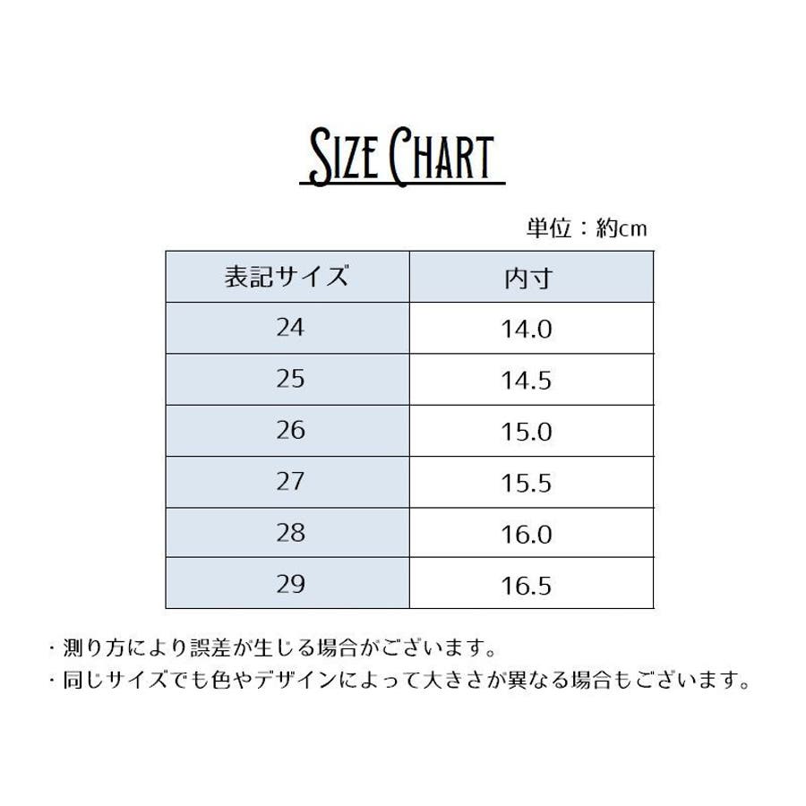 | サイズ | 24【内寸14.0cm】 / 25【内寸14.5cm】 / 26【内寸15.0cm】 / 27【内寸15.5cm】 / 28【内寸16.0cm】 / 29【内寸16.5cm】 |