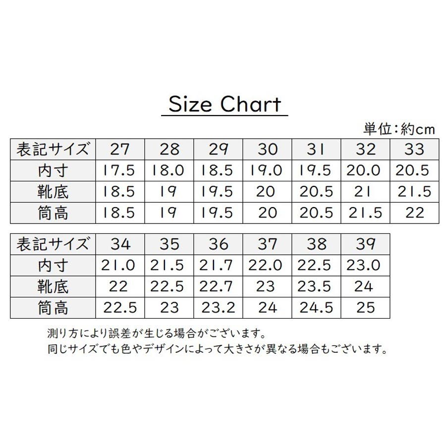 | サイズ | 27【内寸17.5cm】 / 28【内寸18.0cm】 / 29【内寸18.5cm】 / 30【内寸19.0cm】 / 31【内寸19.5cm】 / 32【内寸20.0cm】 / 33【内寸20.5cm】 / 34【内寸21.0cm】 / 35【内寸21.5cm】 / 36【内寸21.7cm】 / 37【内寸22.0cm】 / 38【内寸22.5cm】 / 39【内寸23.0cm】 |