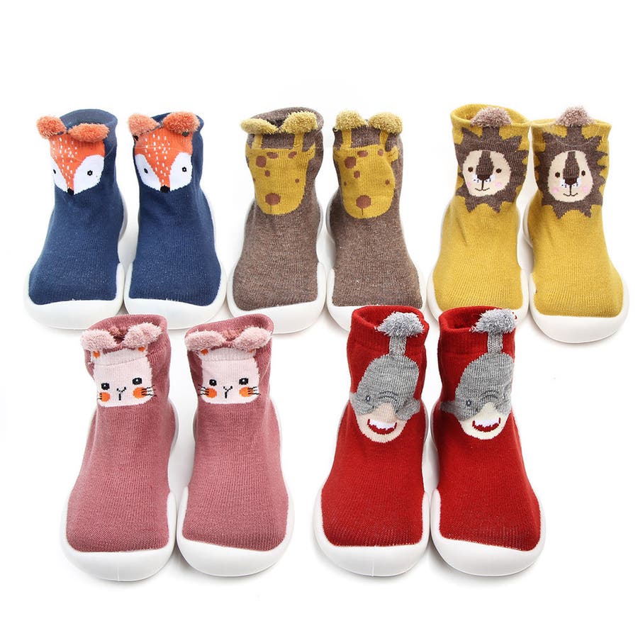ソックス風の形状で、靴底は滑りにくいゴム製になっています。