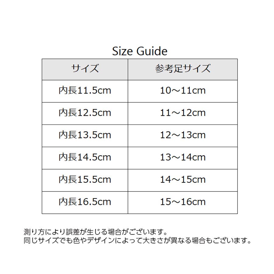 | サイズ | 内長11.5cm / 内長12.5cm / 内長13.5cm / 内長14.5cm / 内長15.5cm / 内長16.5cm |