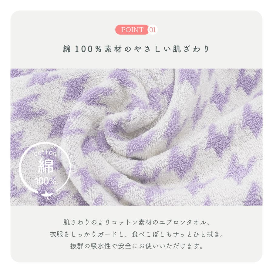 柔らかなタオル素材で吸水性も抜群、安心してお使いいただけます。
