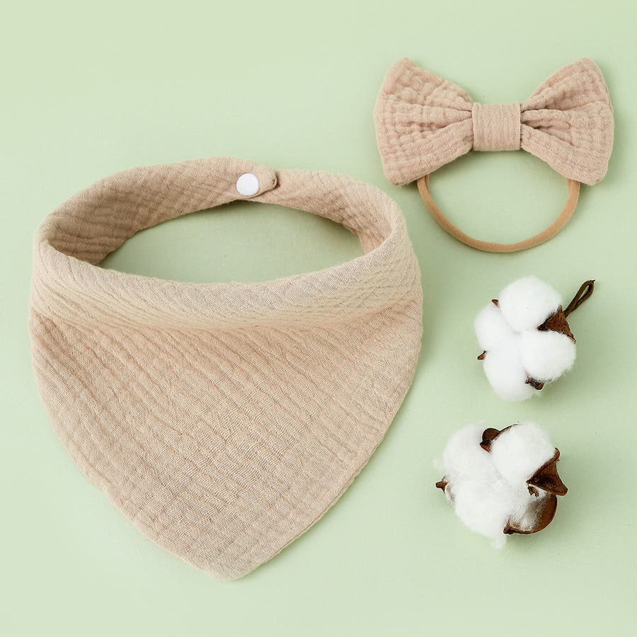 ベビー用スタイとヘッドバンドの2点セットです。