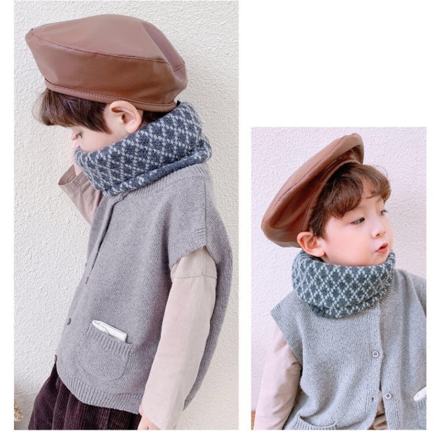 ひし型やチェック柄がおしゃれな子供用ネックウォーマーです。