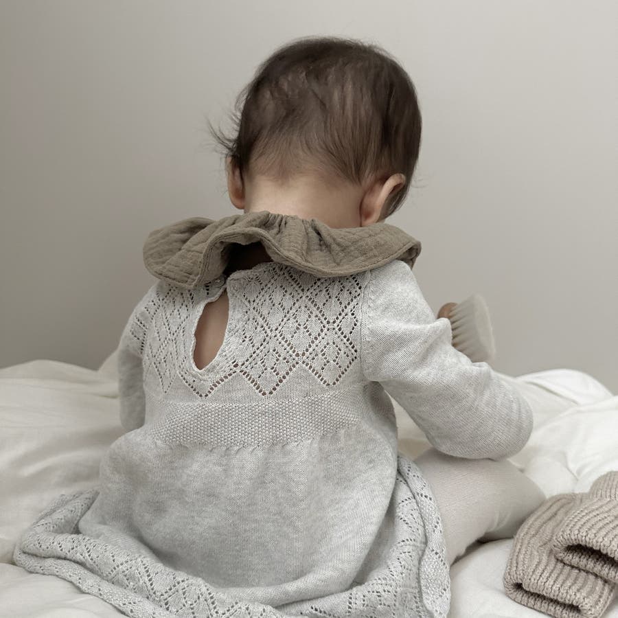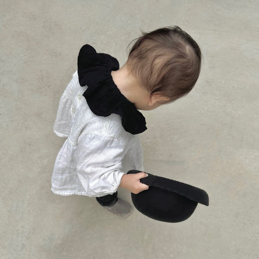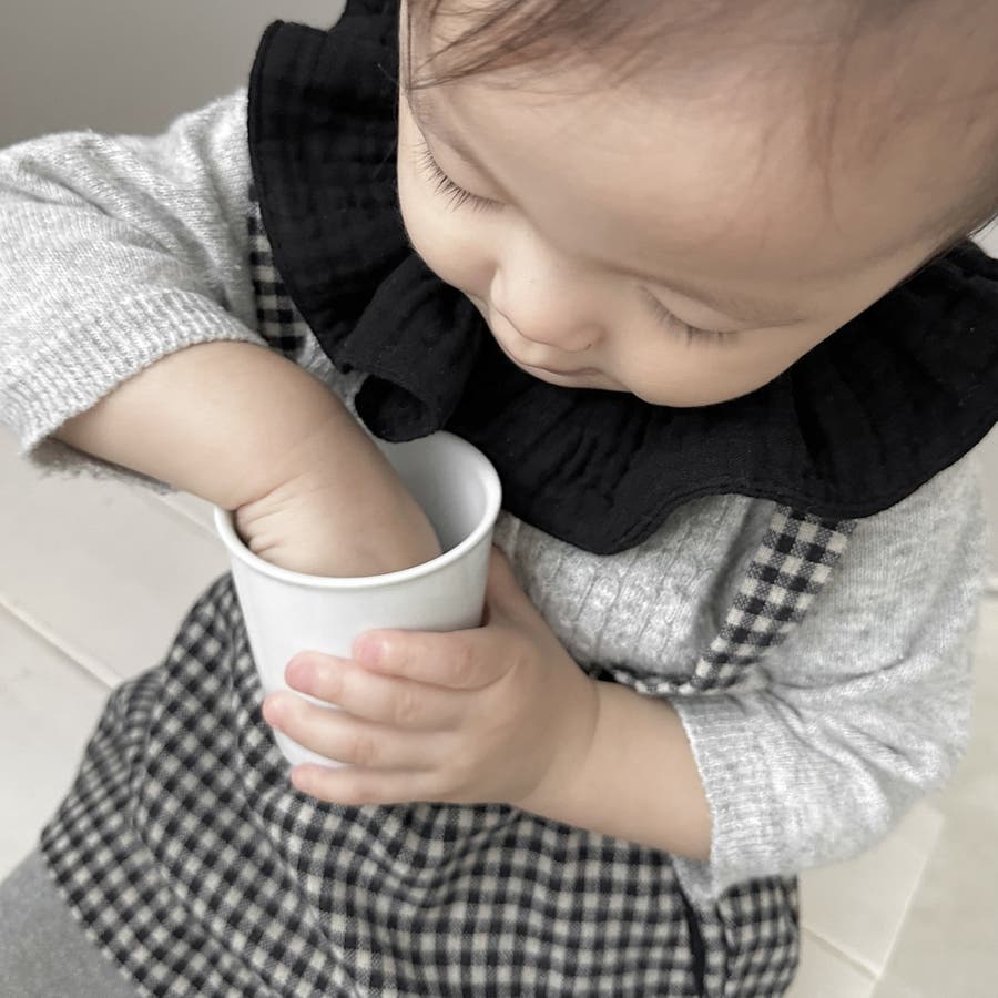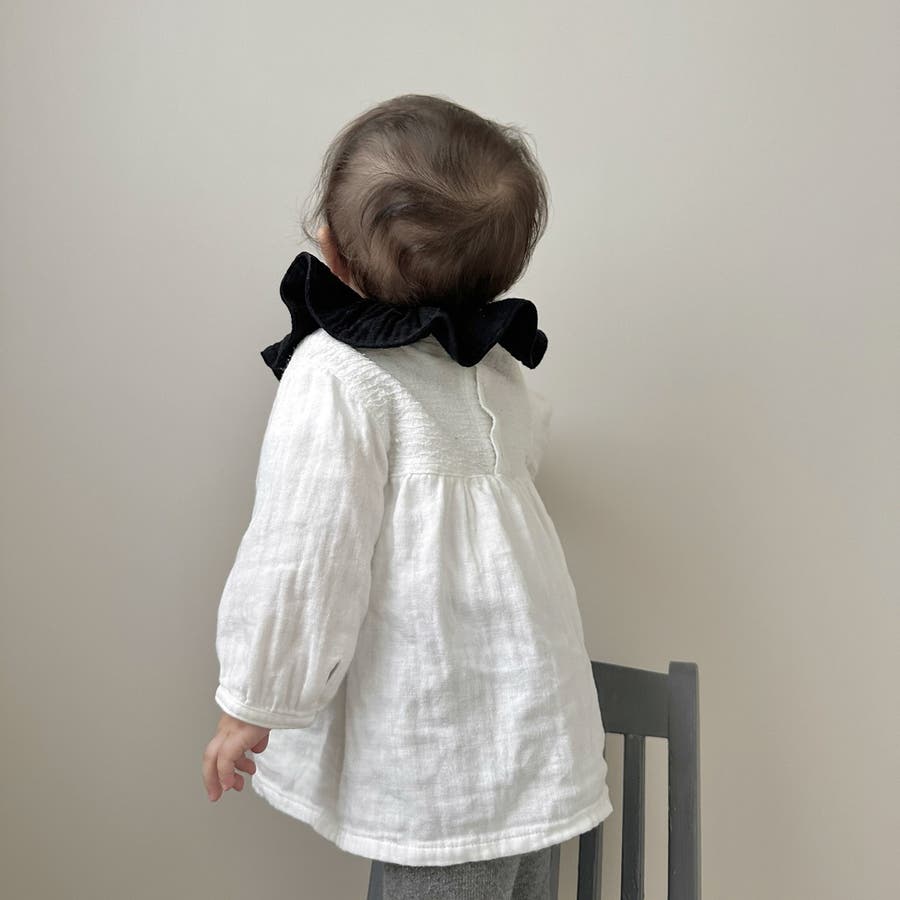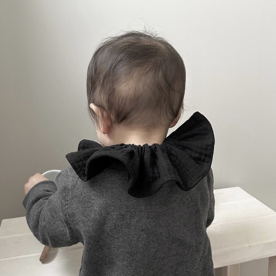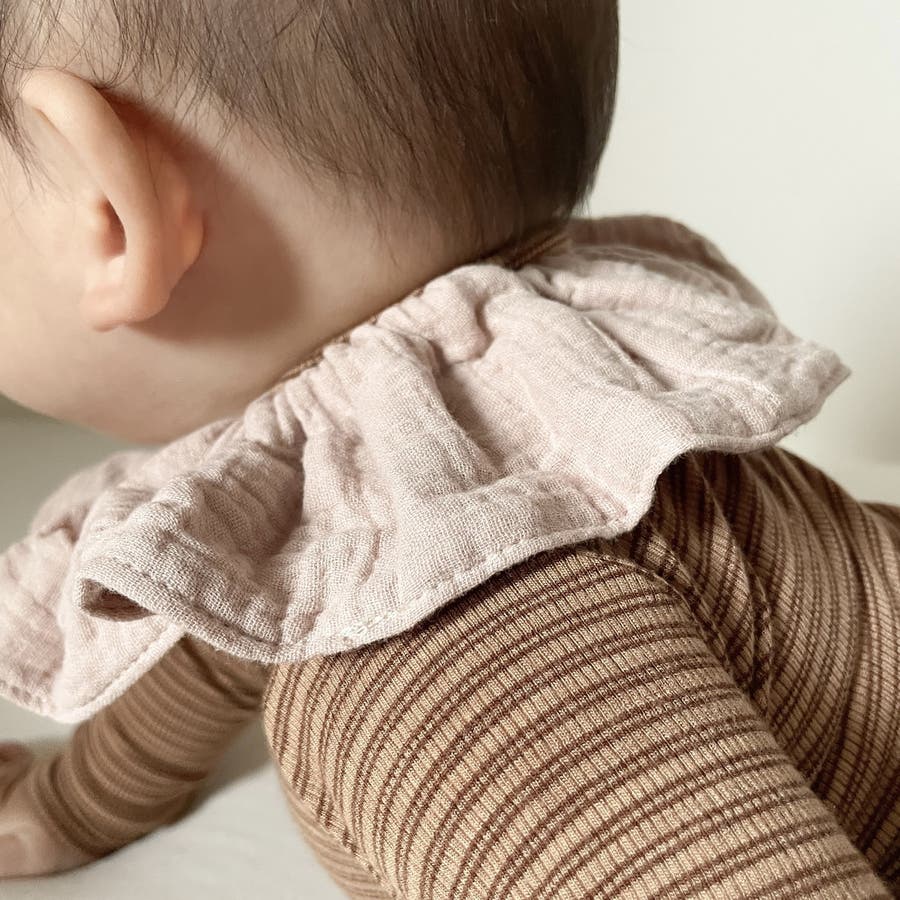 付け襟のようなフリルデザインがキュートなベビースタイ。