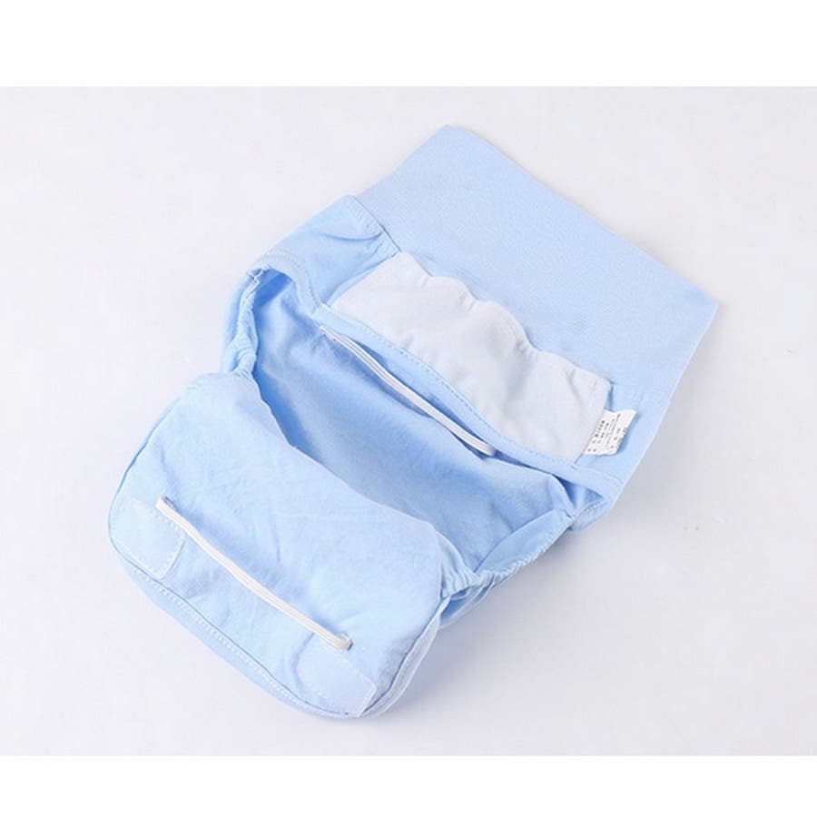 中央がマジックテープで開閉でき、おむつカバーをはかせた状態でのおむつ替えが可能!