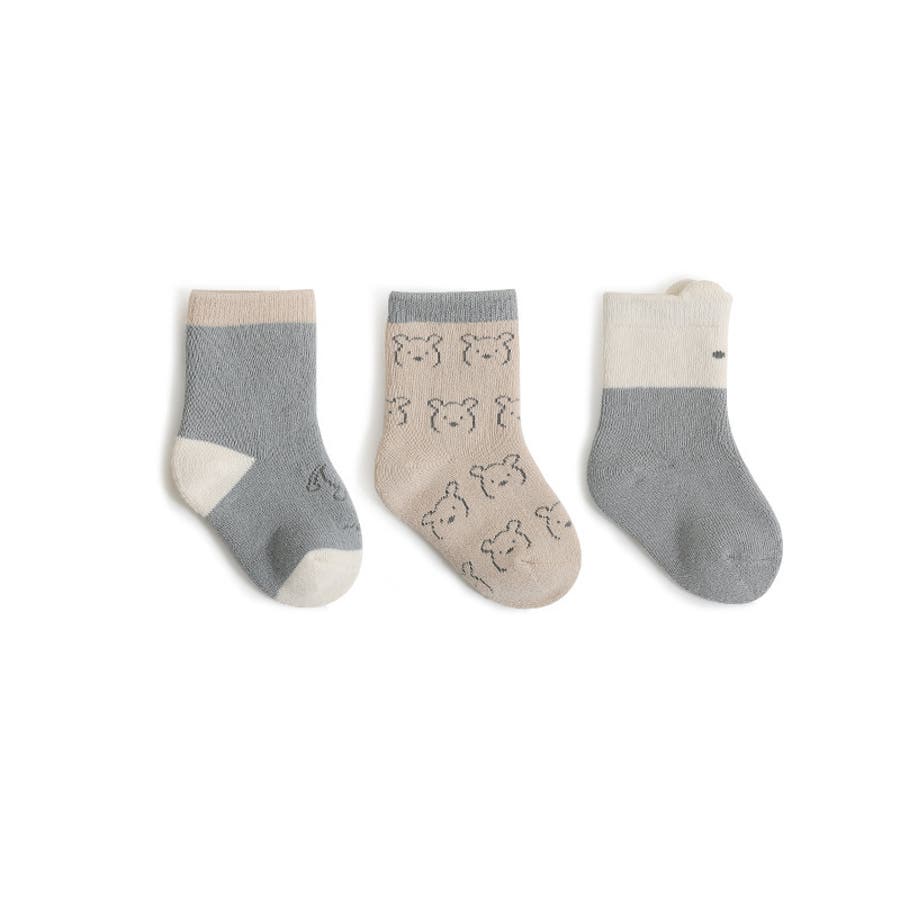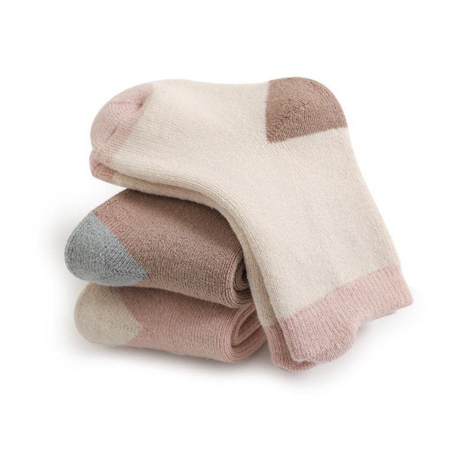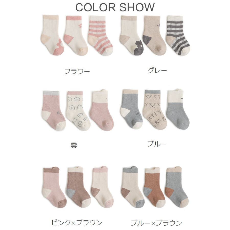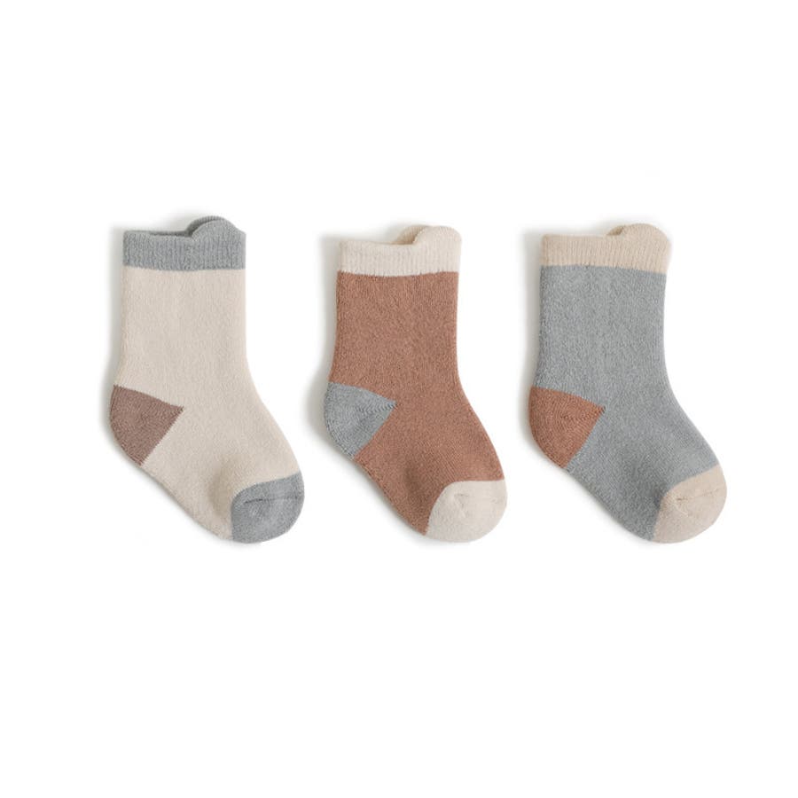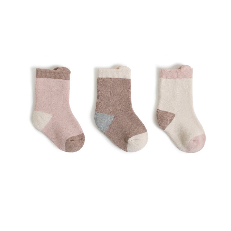 優しい色合いがおしゃれなベビー&キッズサイズのクルーソックス3足セットです。