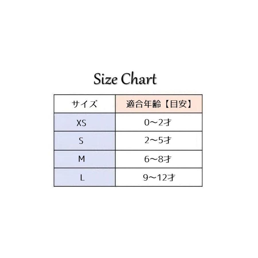 | サイズ | L【9~12才】 / M【6~8才】 / S【2~5才】 / XS【0~2才】 |