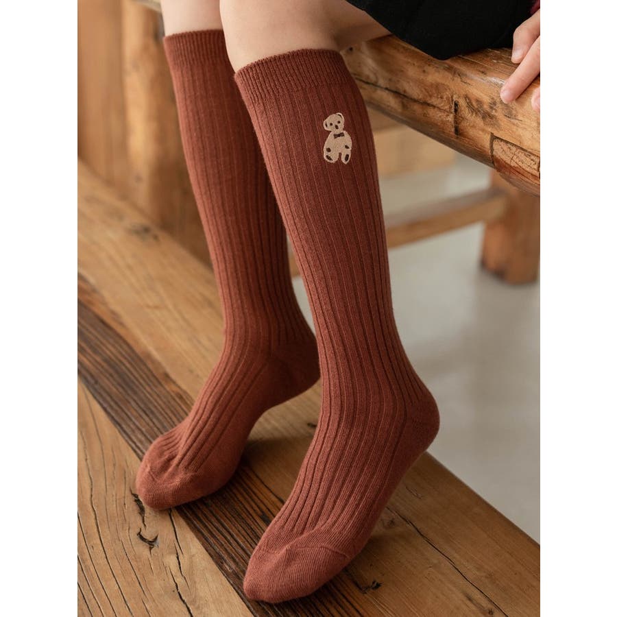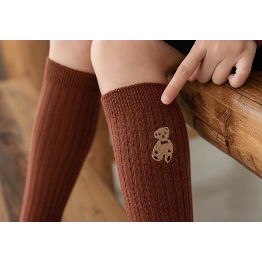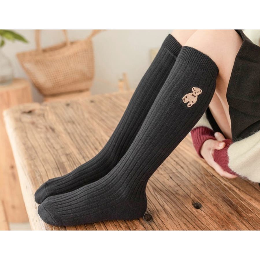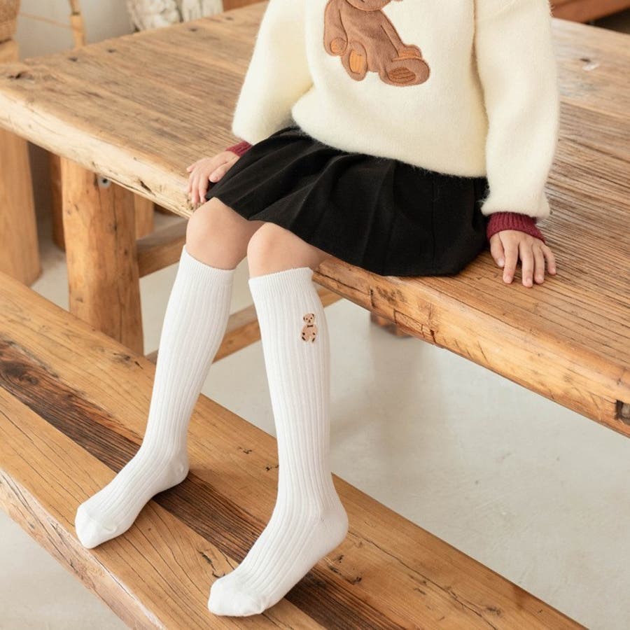 クマの刺繍がかわいらしいハイソックスでした。104センチの娘で、長さもちょうど膝丈程度になり履きやすそうでした。