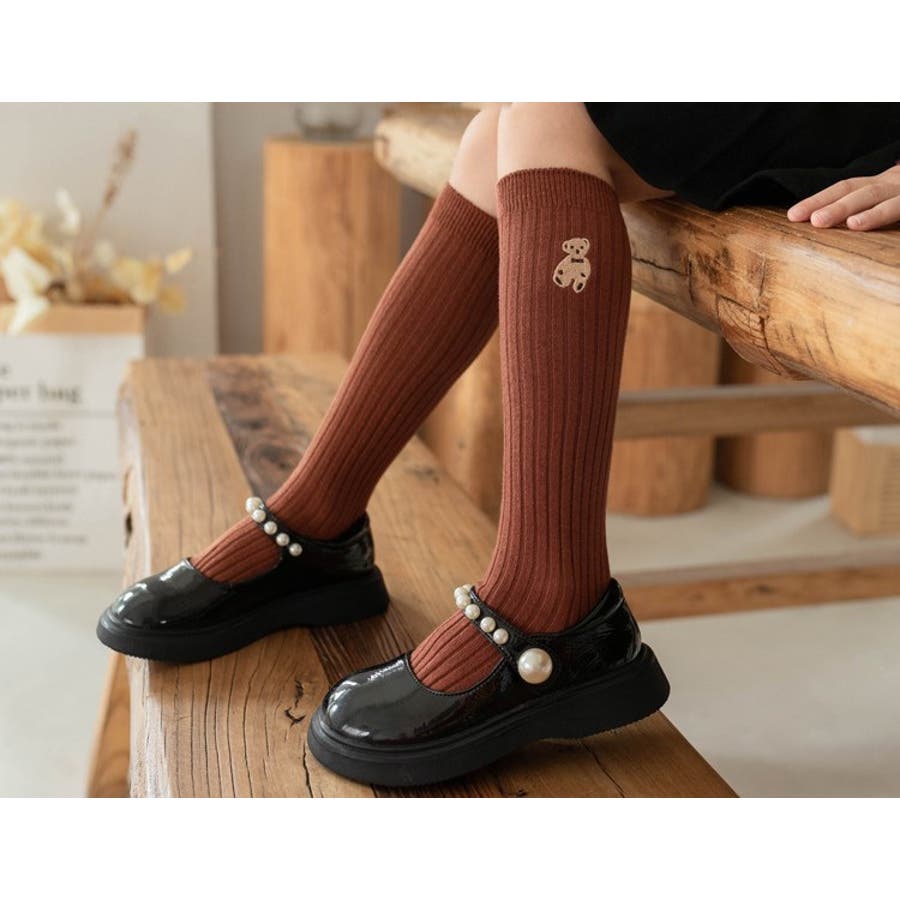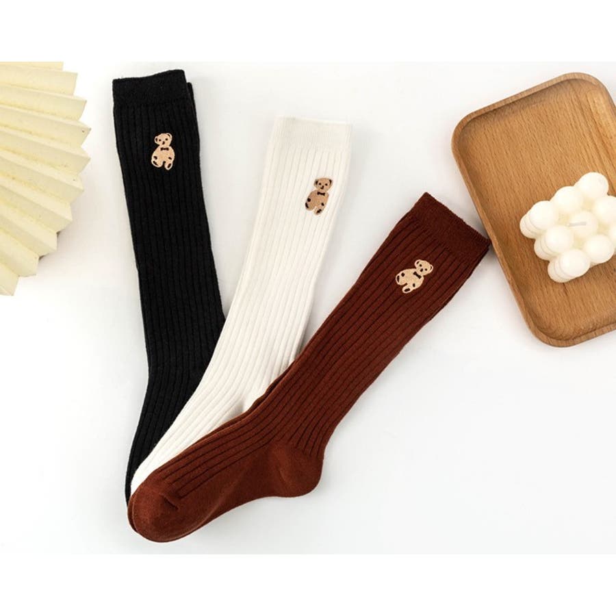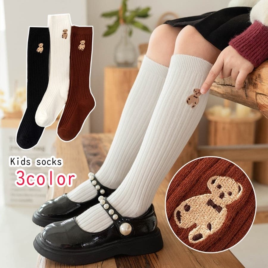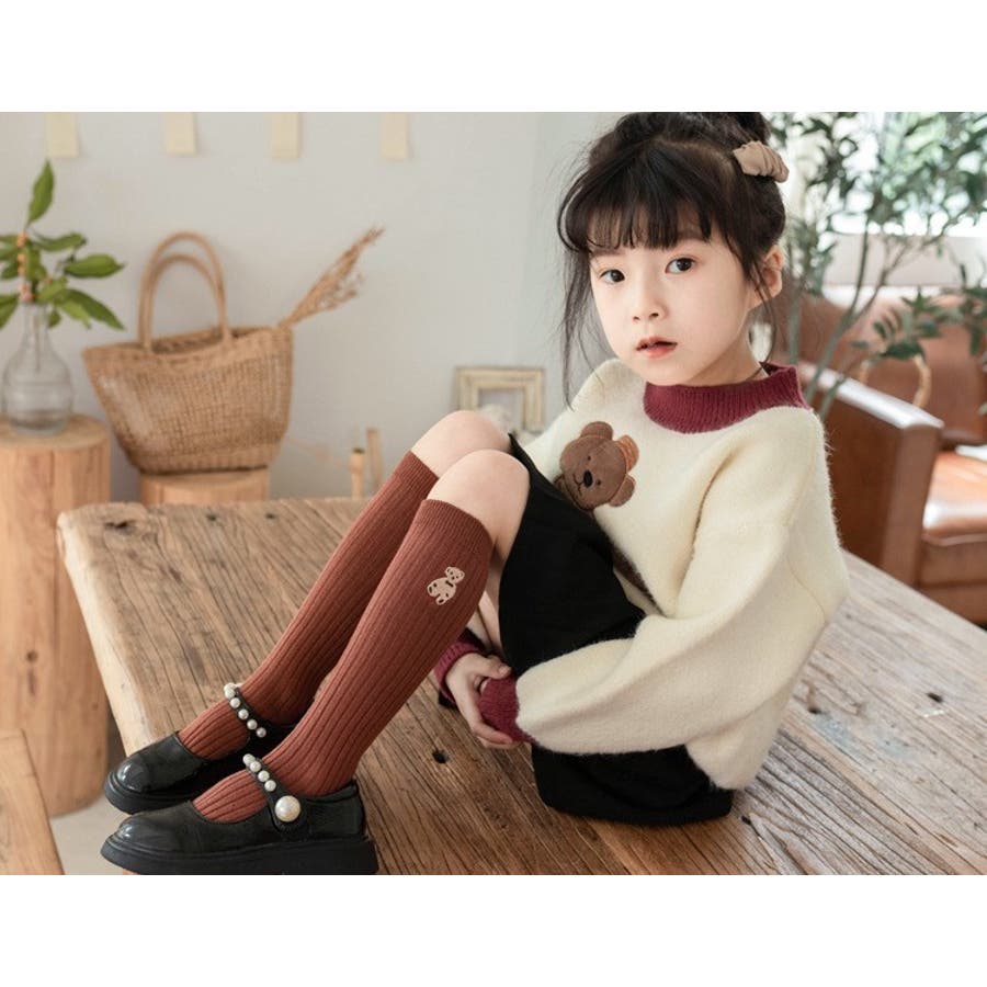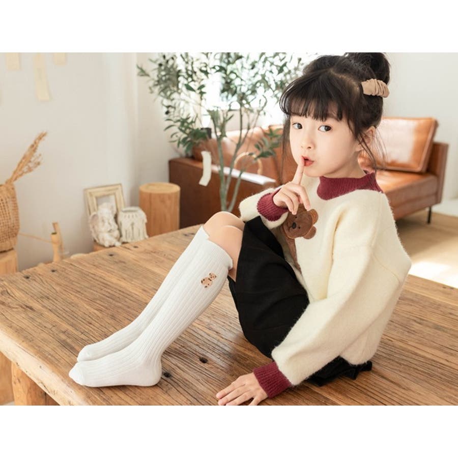 クマの刺繍がかわいらしいハイソックスでした。104センチの娘で、長さもちょうど膝丈程度になり履きやすそうでした。