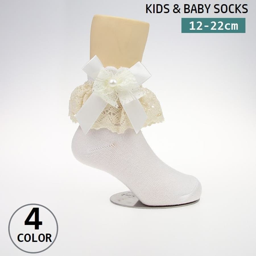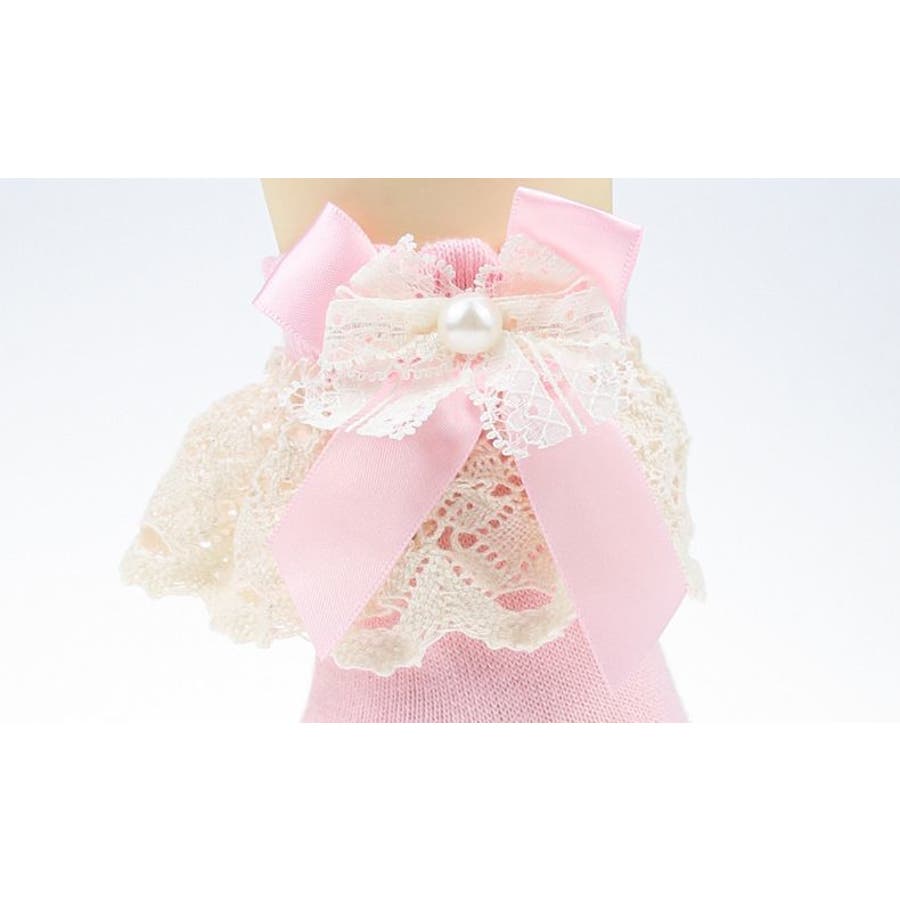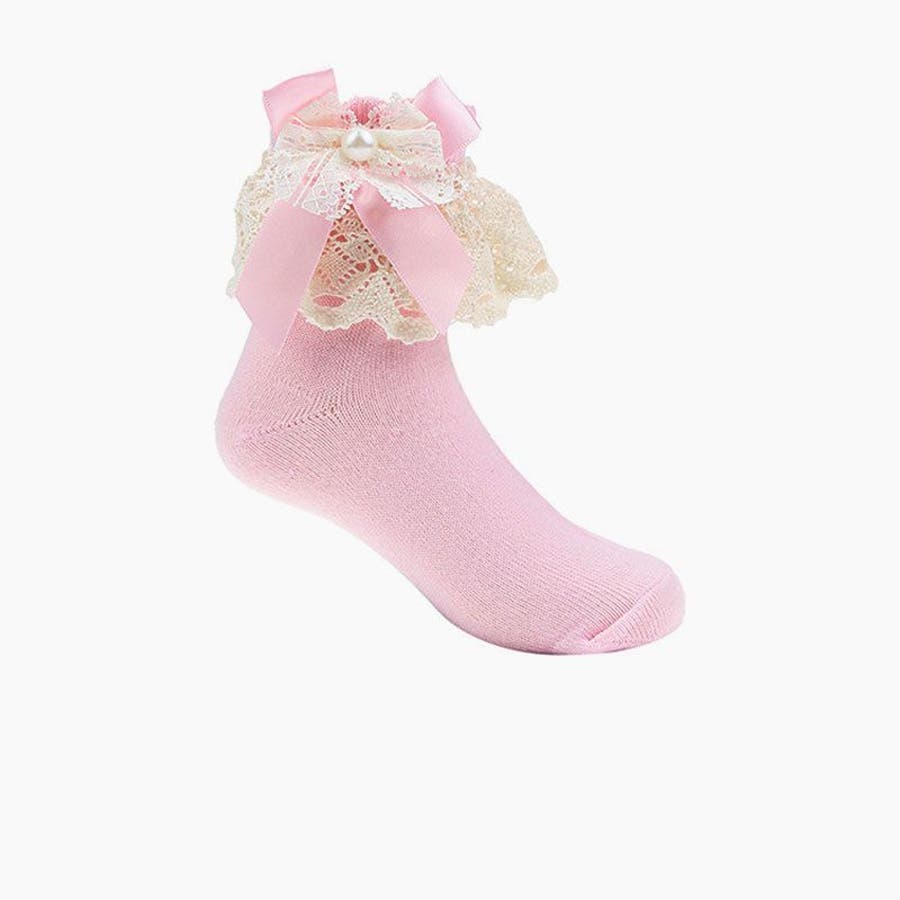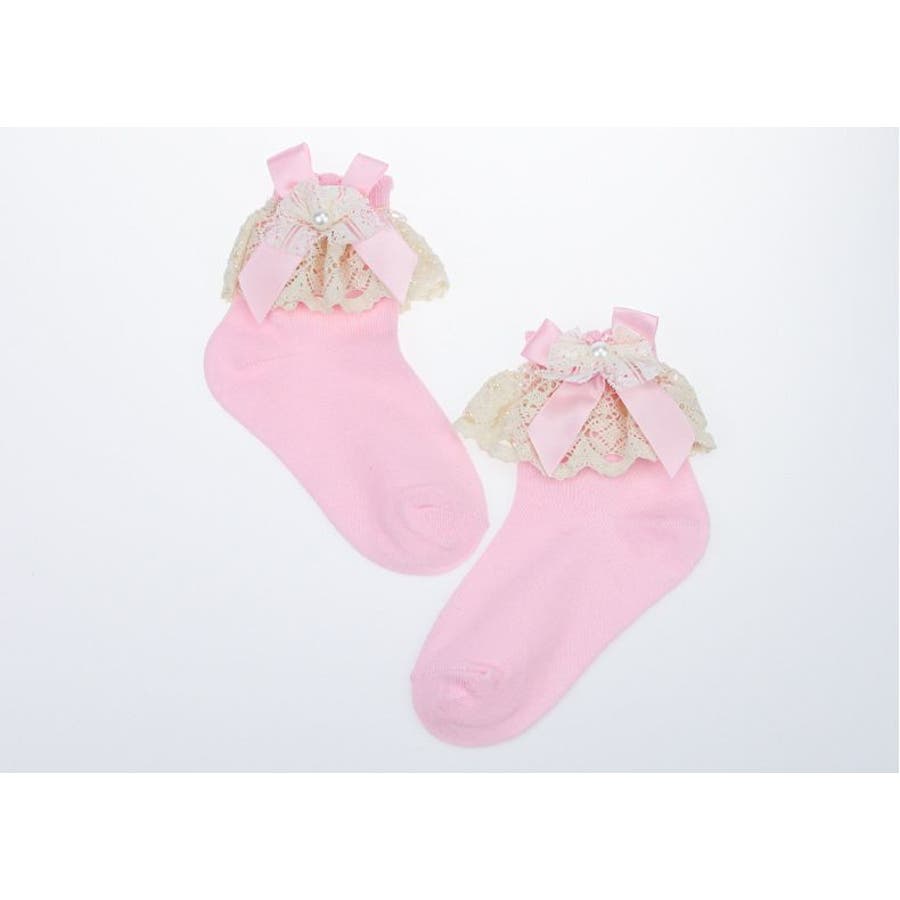 レースやリボンの装飾がガーリーな子供用靴下です。
