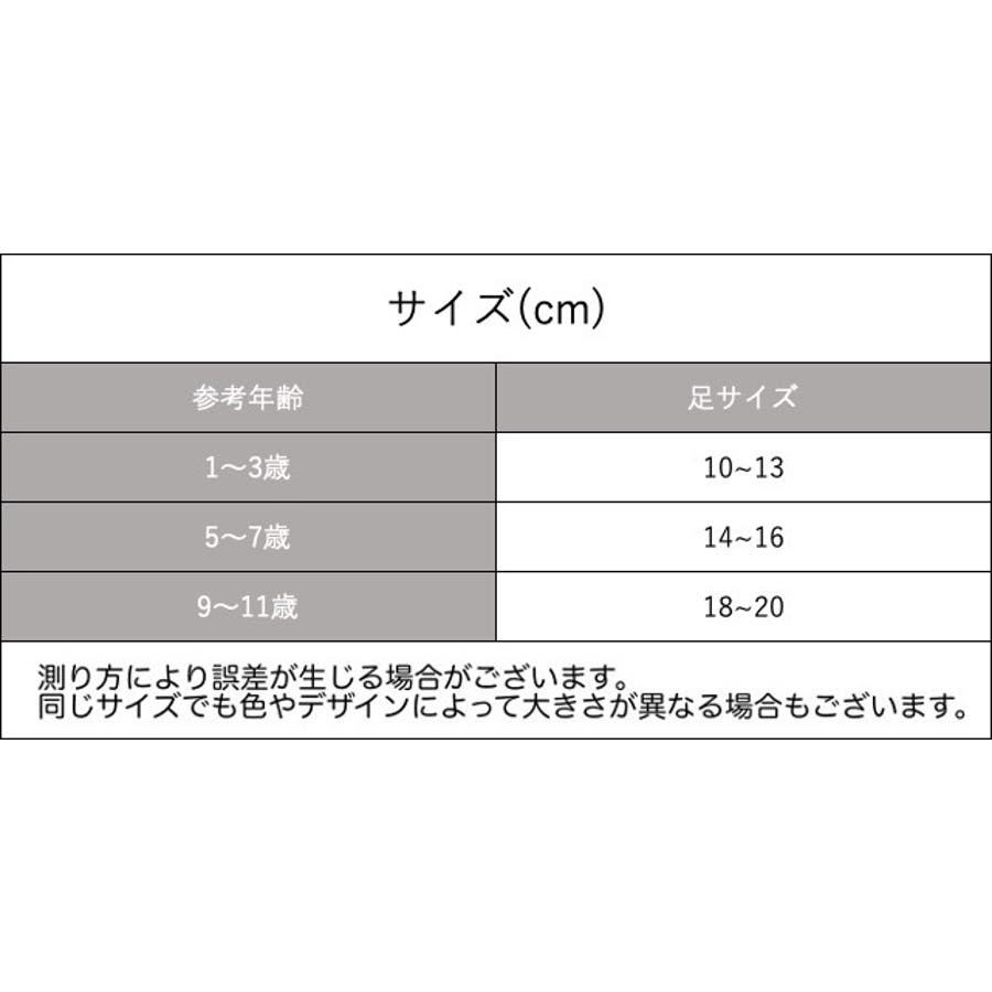 | サイズ | 1~3歳【10~13cm】 / 5~7歳【14~16cm】 / 9~11歳【18~20cm】 |