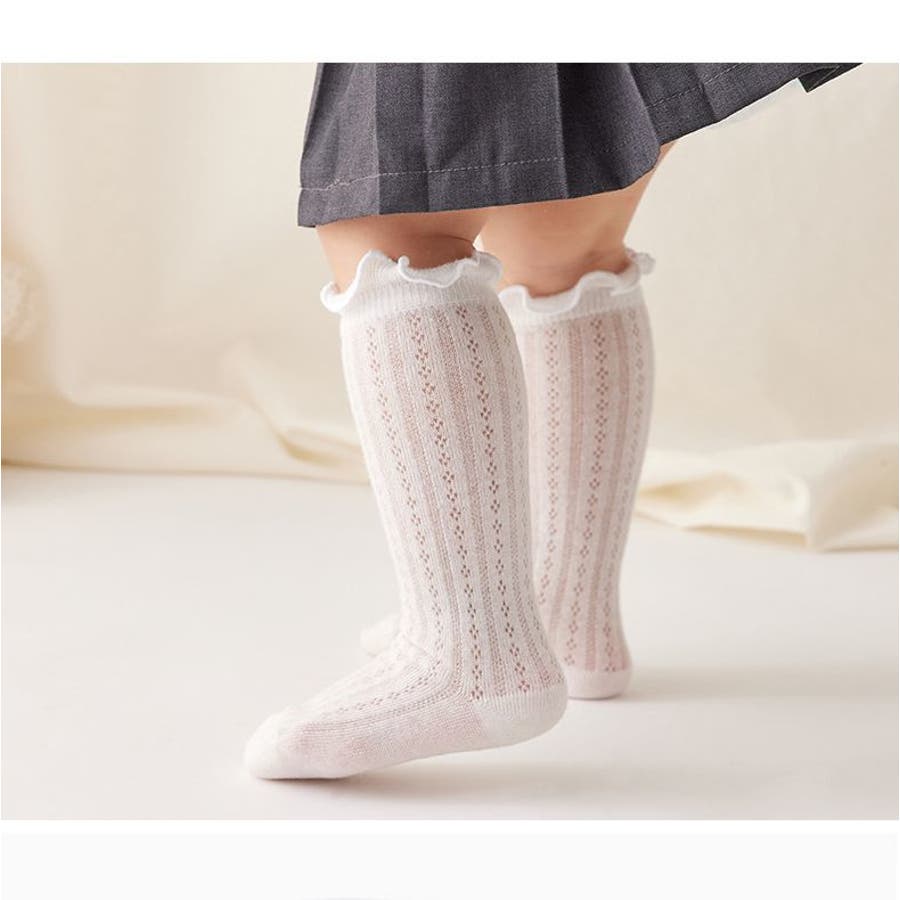 履き口のフリルが可愛いシンプルなベビー・キッズ用のハイソックスです。