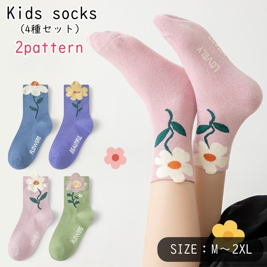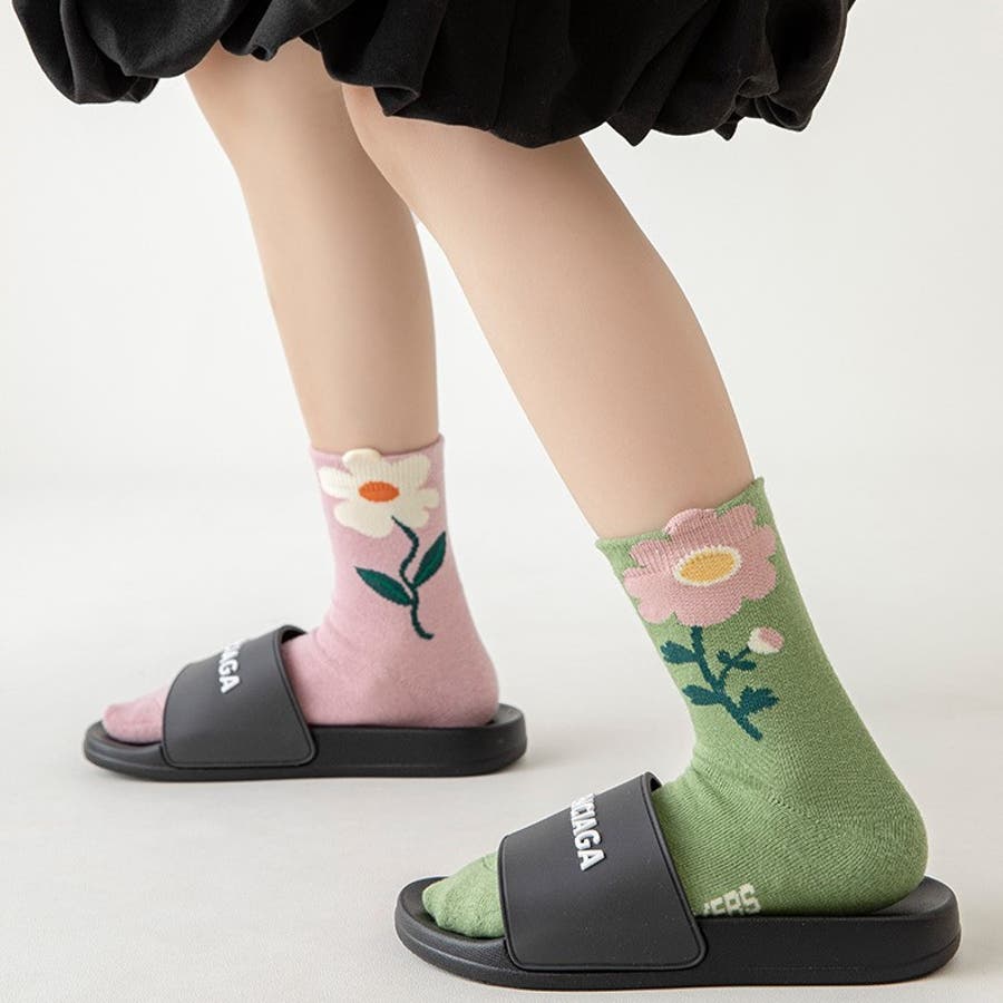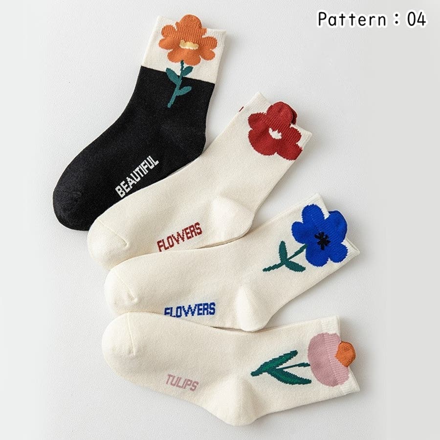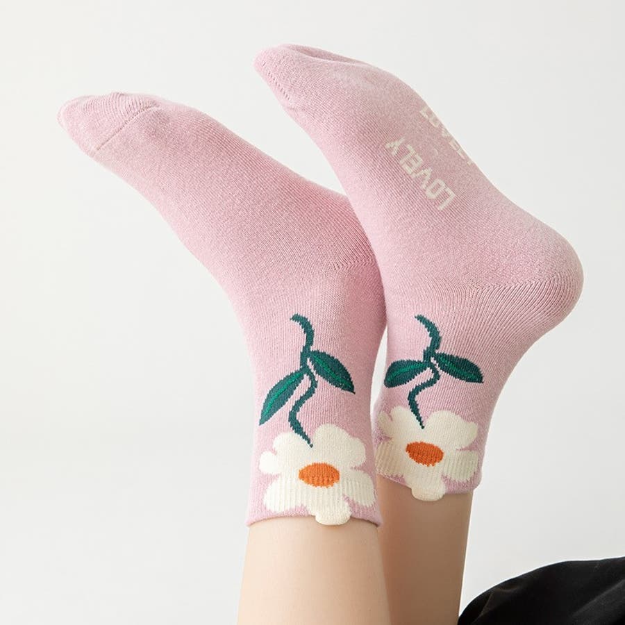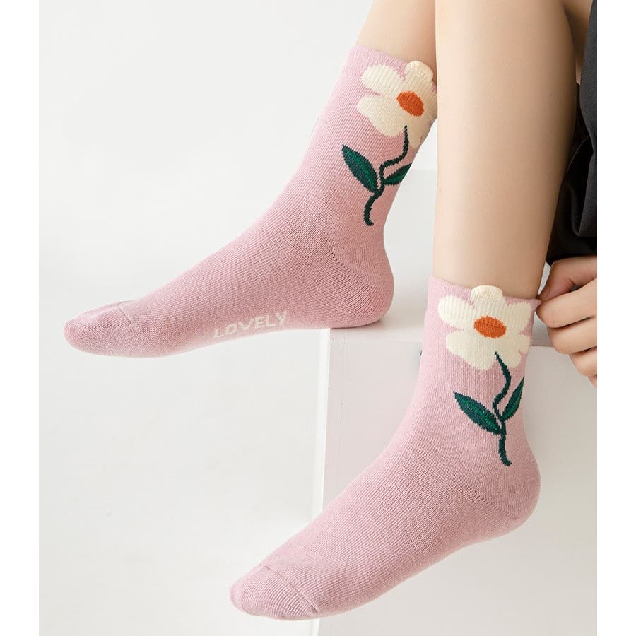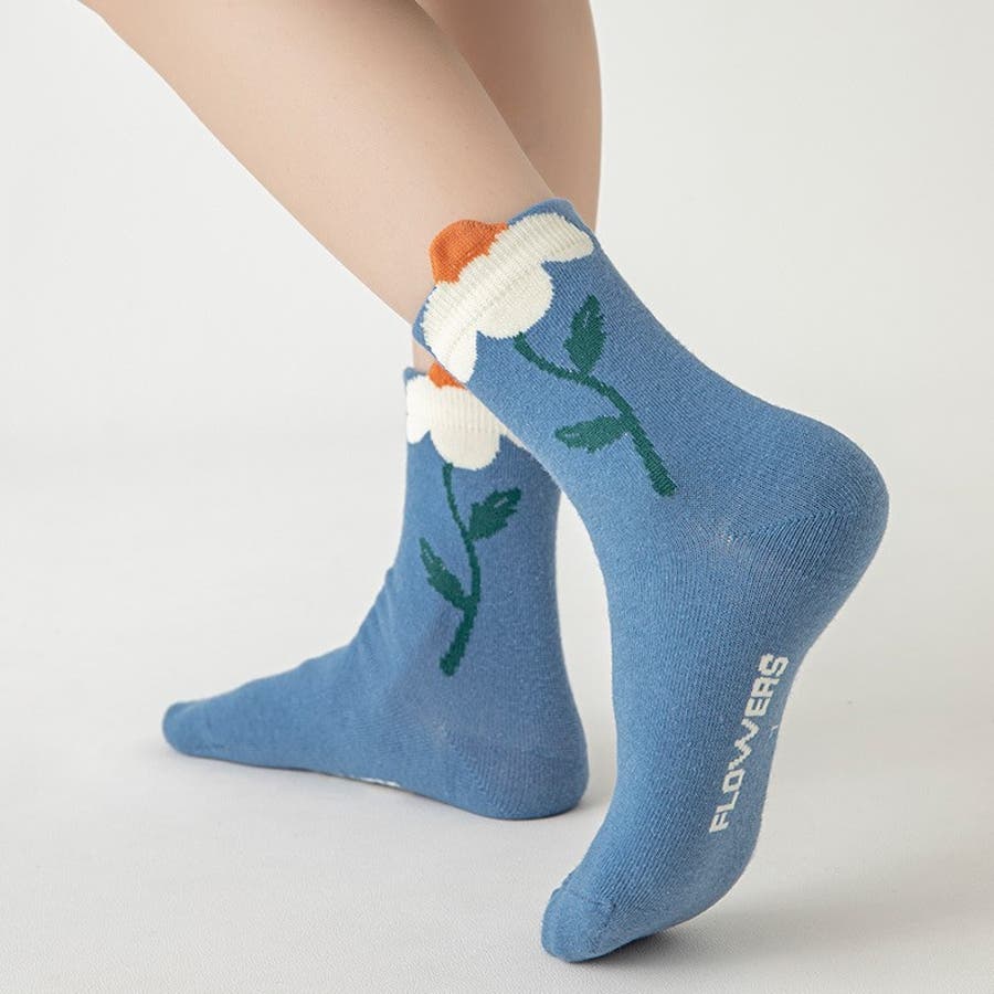 大胆にあしらわれたお花の模様が可愛い靴下です♪