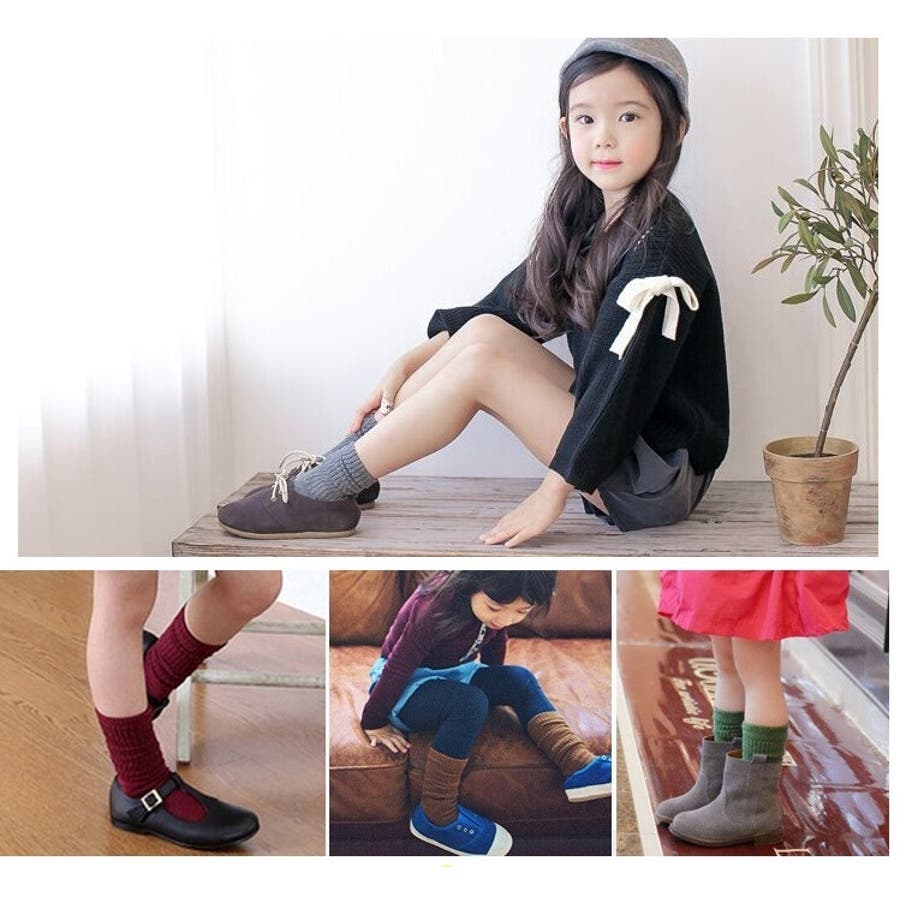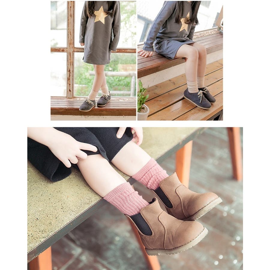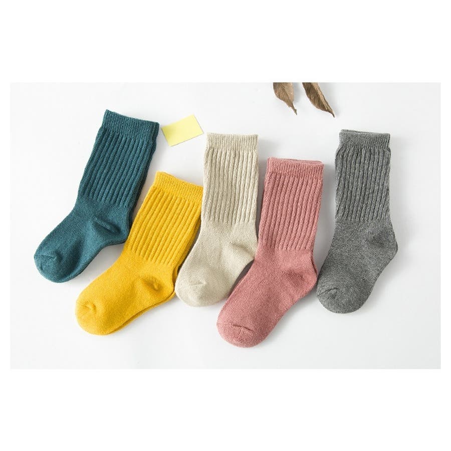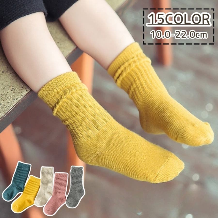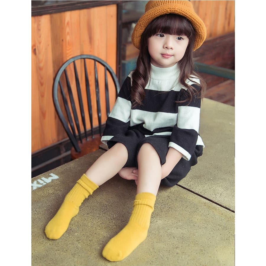 定番のリブデザインがかわいい、キッズ用クルーソックスです。