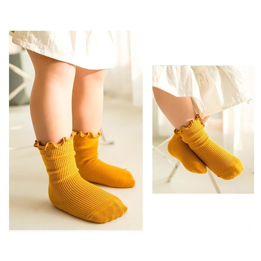 シンプルな可愛さで普段使いにぴったりなこども用のクルーソックスです。