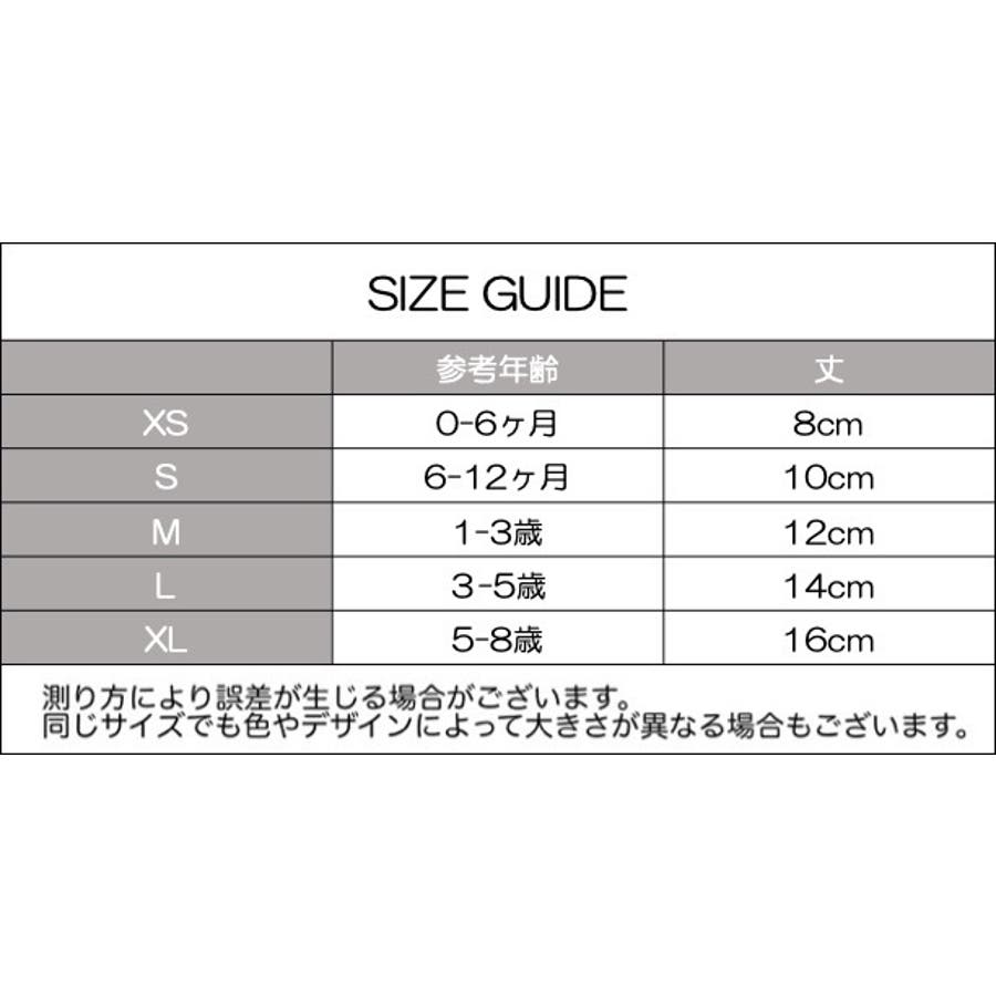 | サイズ | L【3~5歳】 / M【1~3歳】 / S【6~12ヶ月】 / XL【5~8歳】 / XS【0~6ヶ月】 |