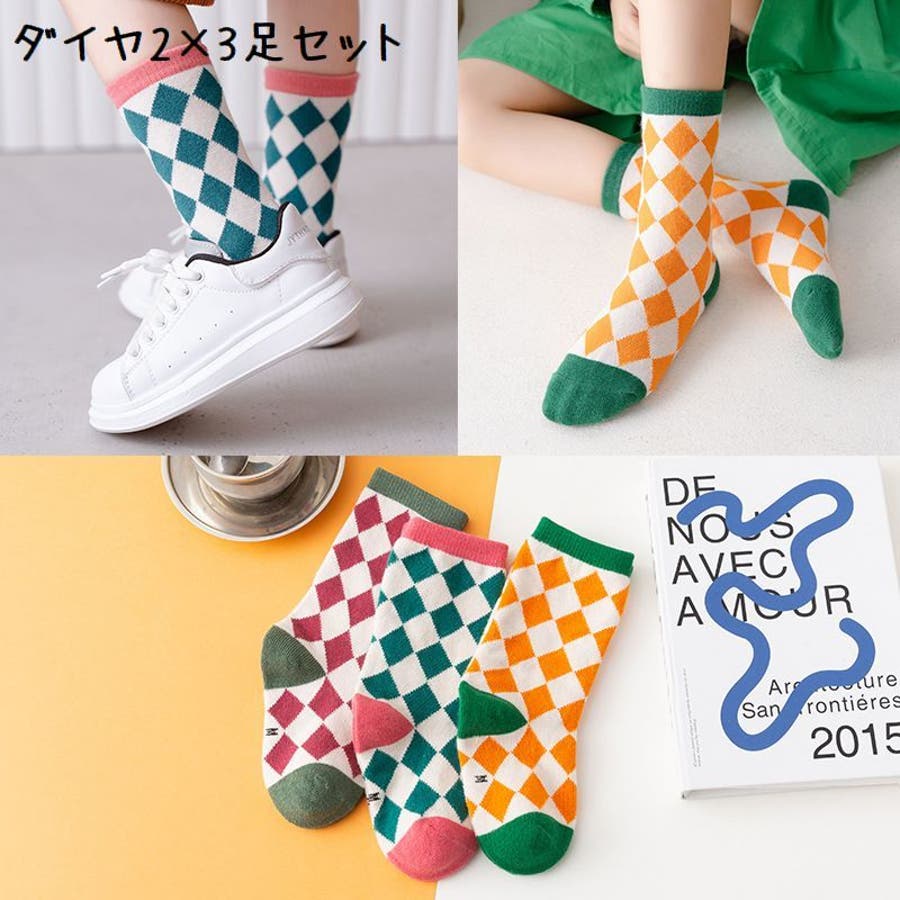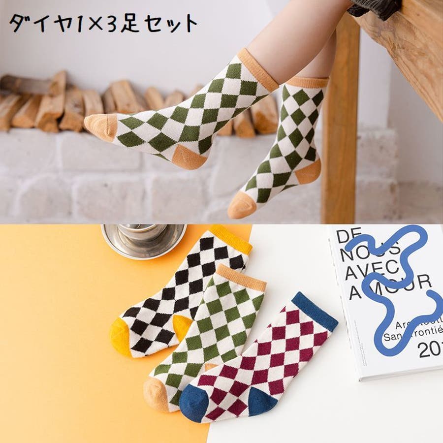 | デザイン | チェック1×3足セット / チェック2×3足セット / ダイヤ1×3足セット / ダイヤ2×3足セット |