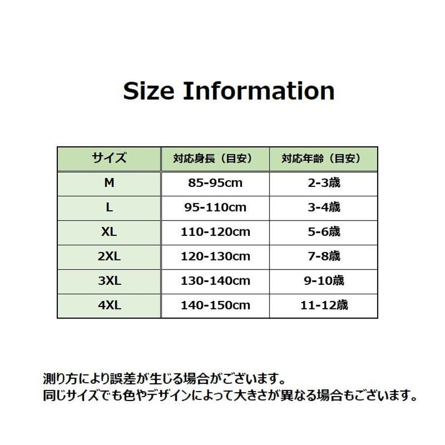 2XL【対応身長120-130cm】,3XL【対応身長130-140cm】,4XL【対応身長140-150cm】,L【対応身長95-110cm】,M【対応身長85-95cm】,XL【対応身長110-120cm】