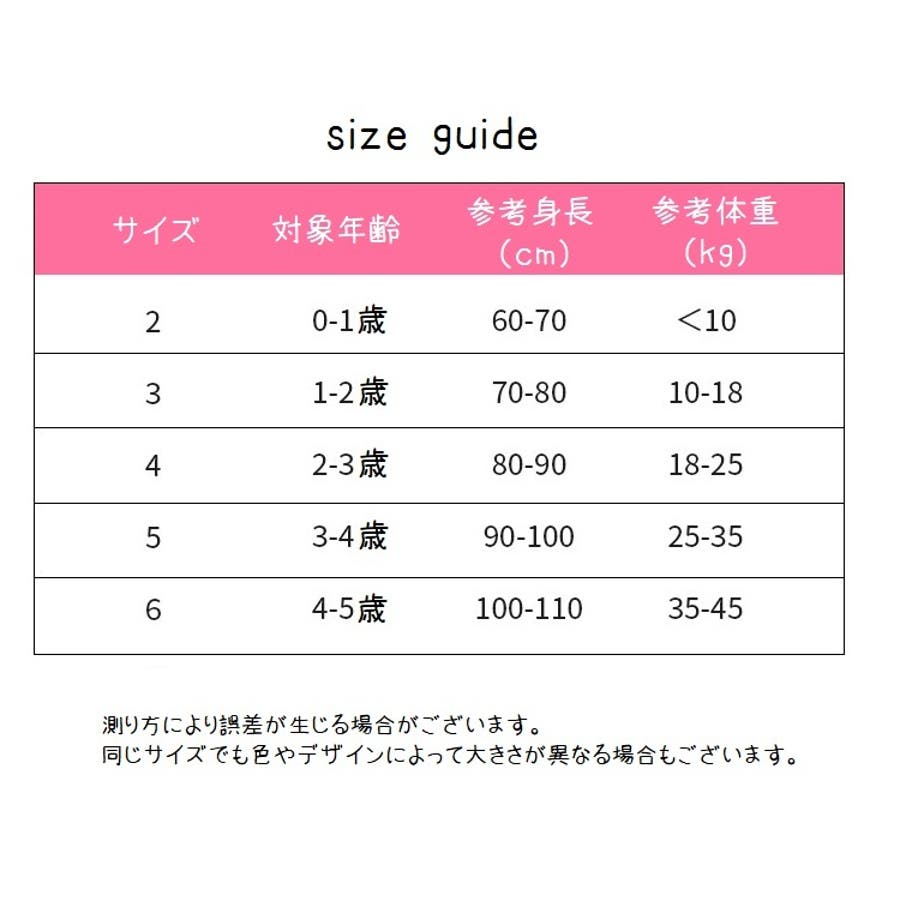 | サイズ | 2【0-1歳】 / 3【1-2歳】 / 4【2-3歳】 / 5【3-4歳】 / 6【4-5歳】 |