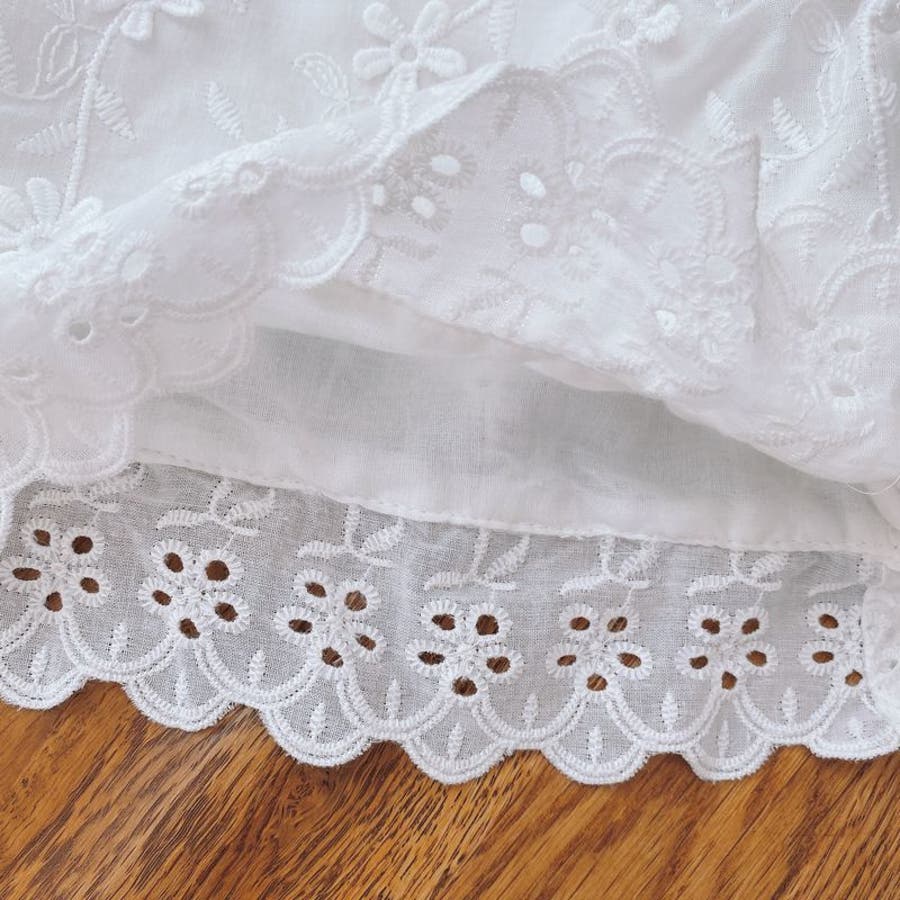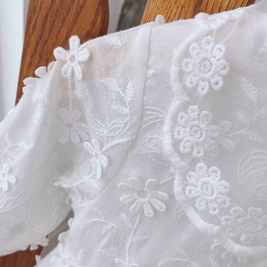 刺繍とレースがたっぷりあしらわれていてとってもロマンティック♪