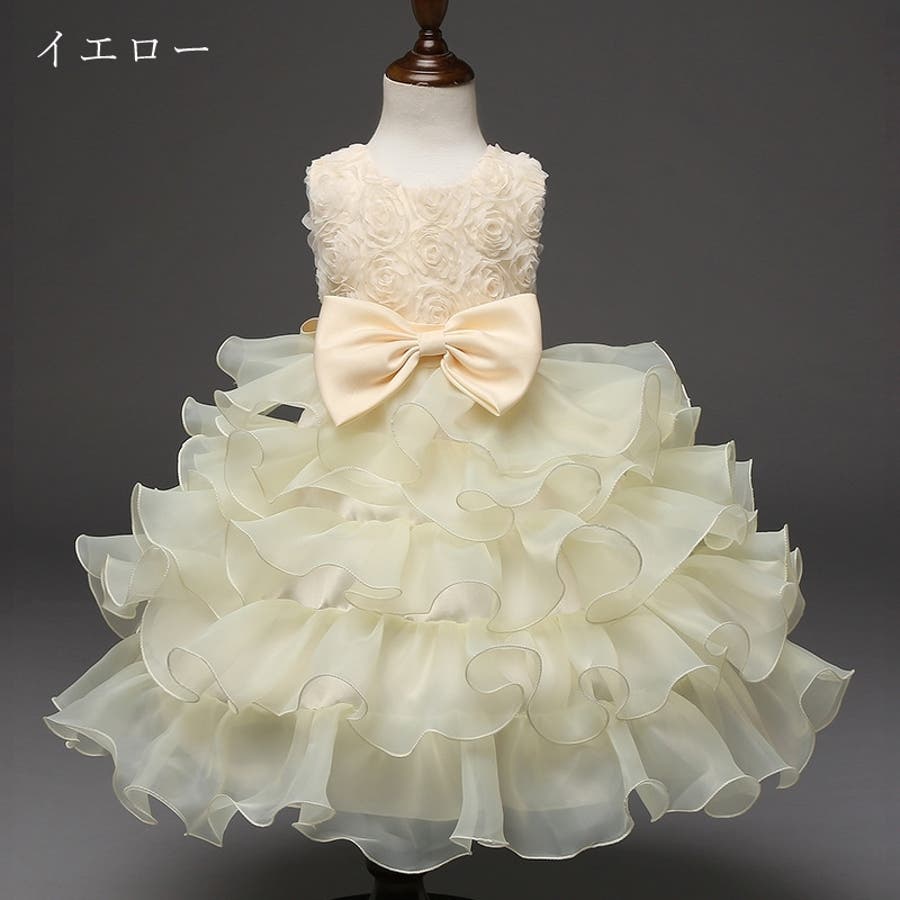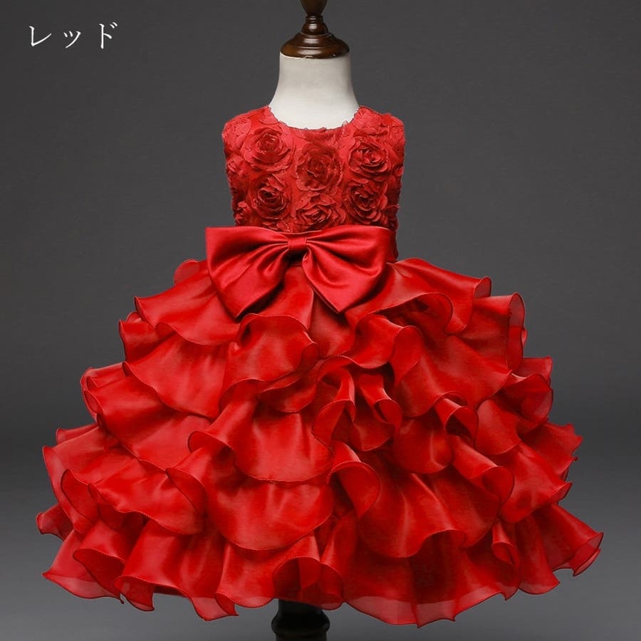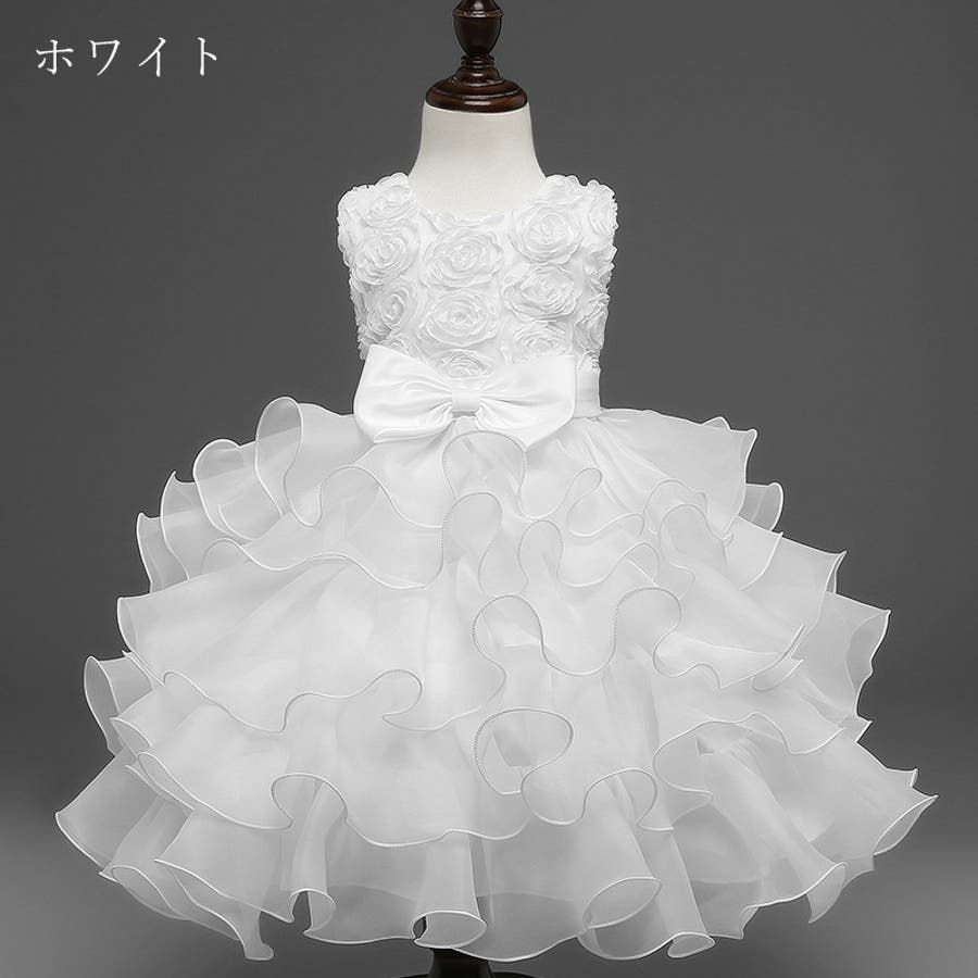 バラの飾りや、ボリュームのあるフリルスカートがとっても華やか♪