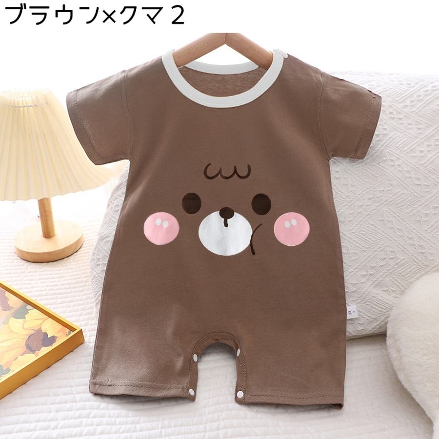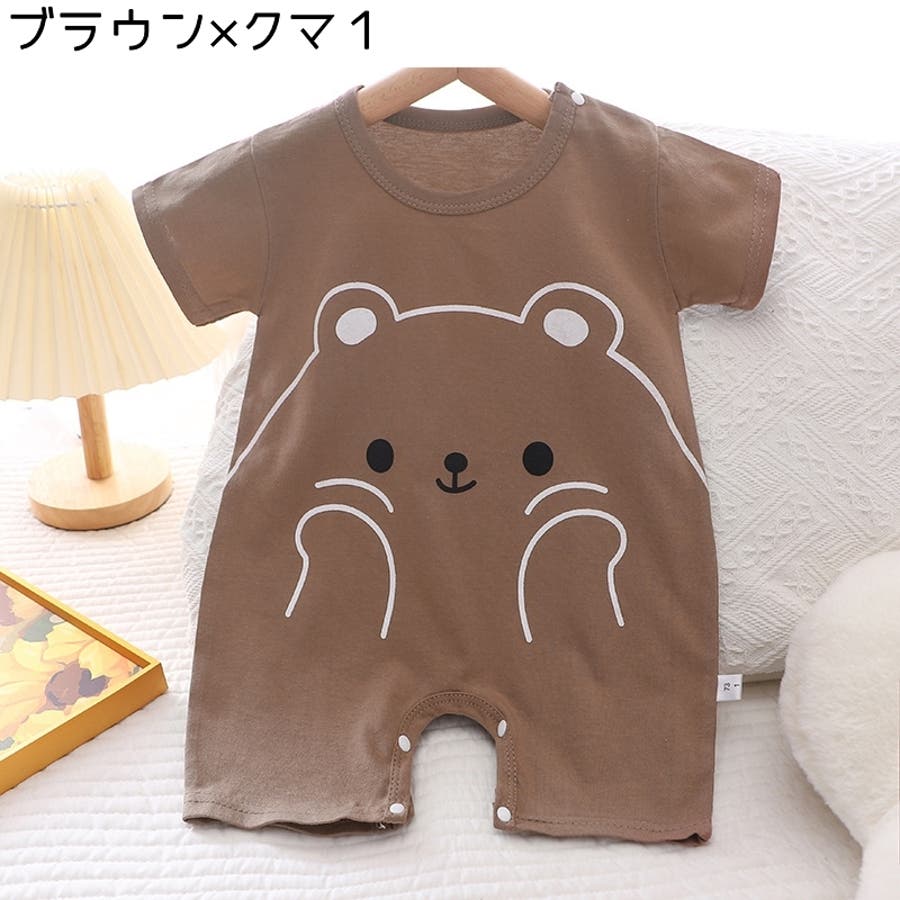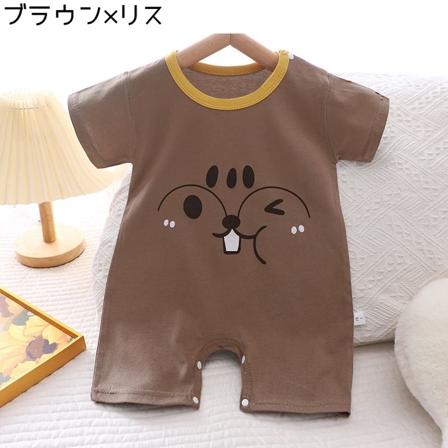 【ブラウン×リス】ロンパース カバーオール 半袖
