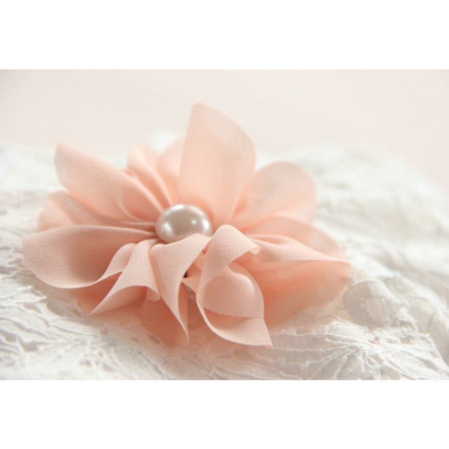 胸元のフラワーコサージュもお洒落なポイント◎