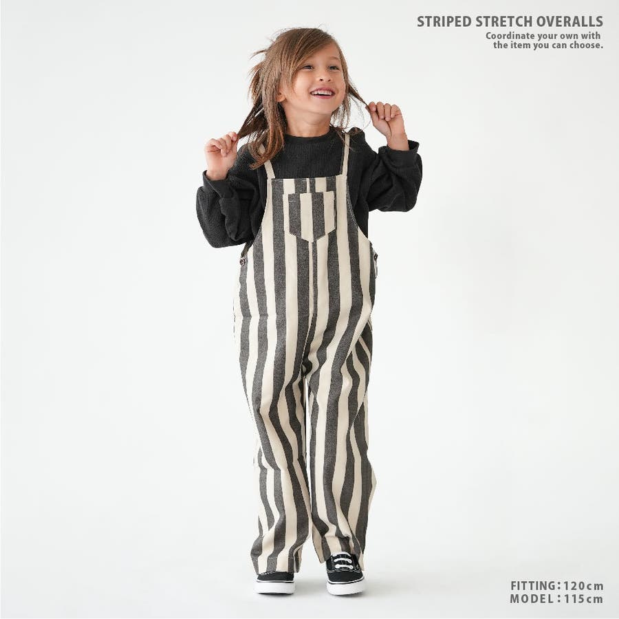 【ストライプサロペット】デザイン ストレッチ ズボン