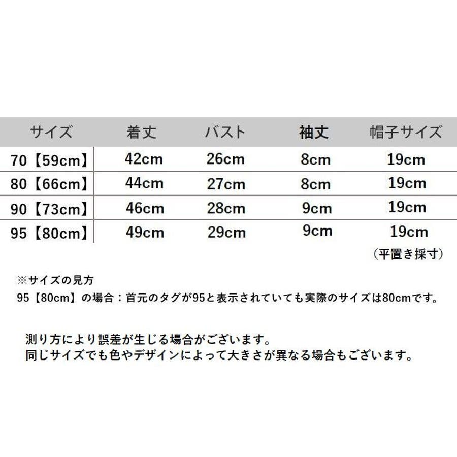 95【80cm】の場合:首元のタグが95と表示されていても実際のサイズは80cmです。