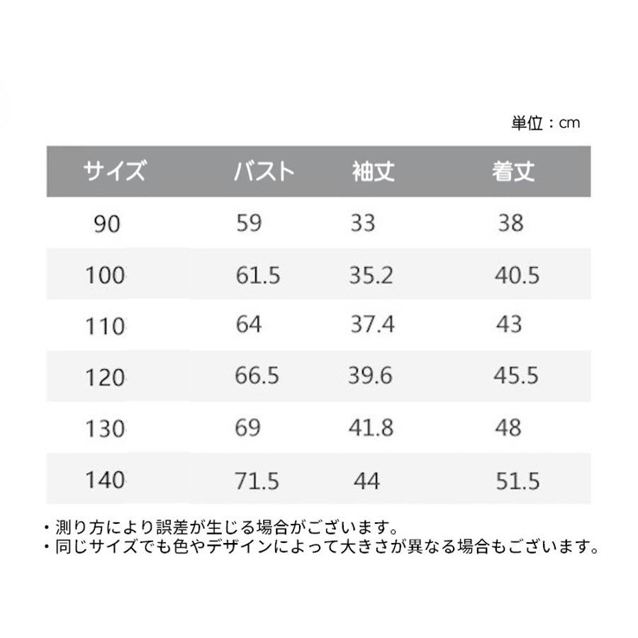 投稿日:2021.11.11可愛くで、伸びも良いので着やすい。120がジャストサイズですが、ワンサイズ上を購入。ちょうどよかったです。