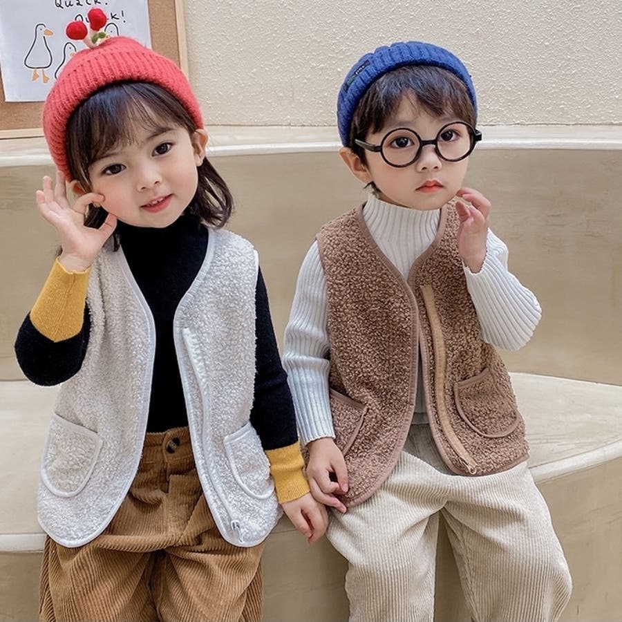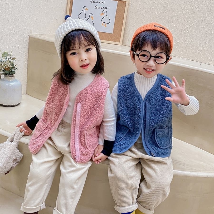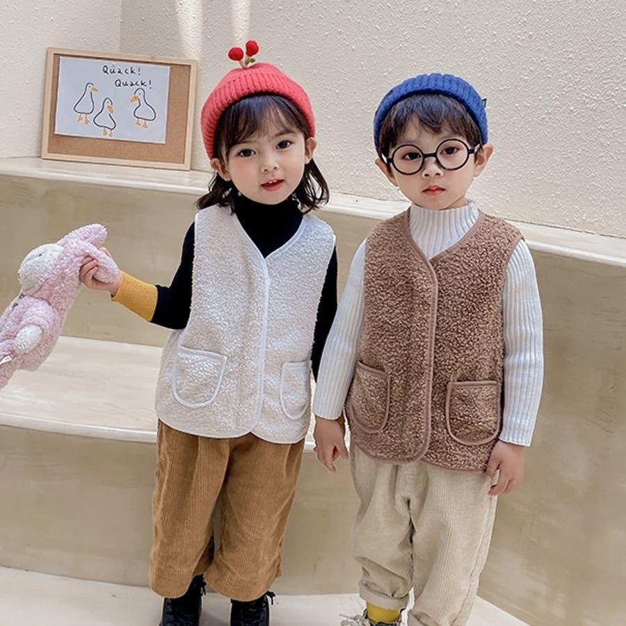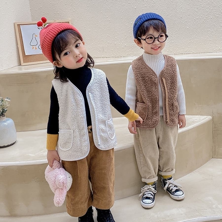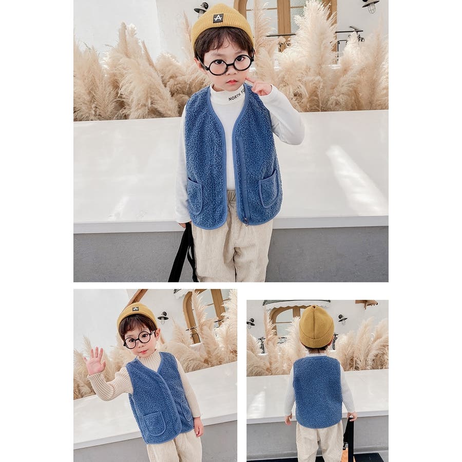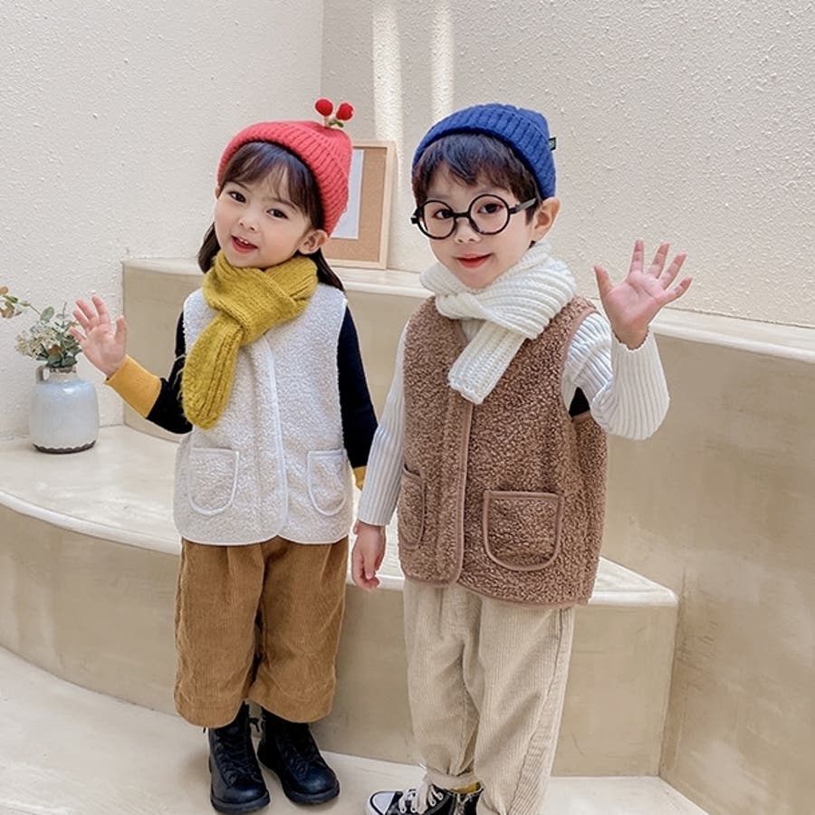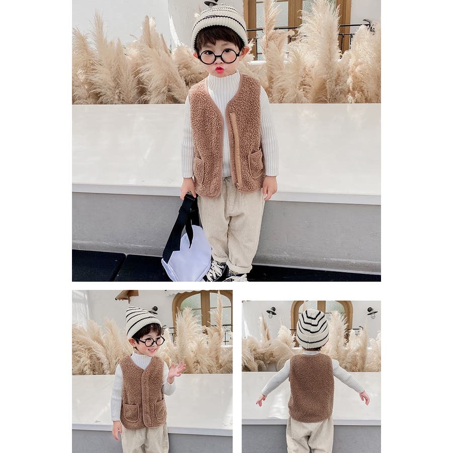 【カーキ】ベスト ボア キッズ